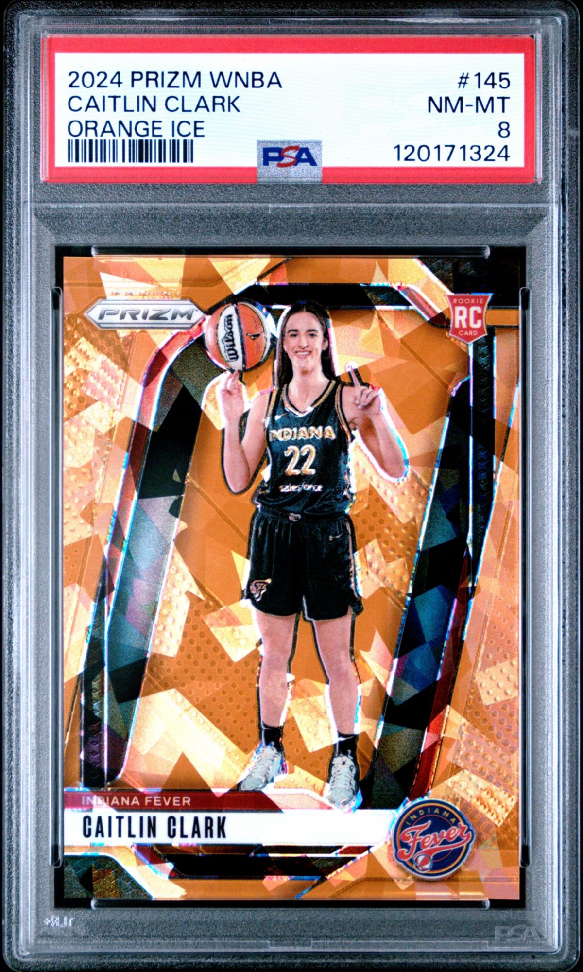 2024 Panini Prizm WNBA 145 Caitlin Clark Orange Ice PSA 8