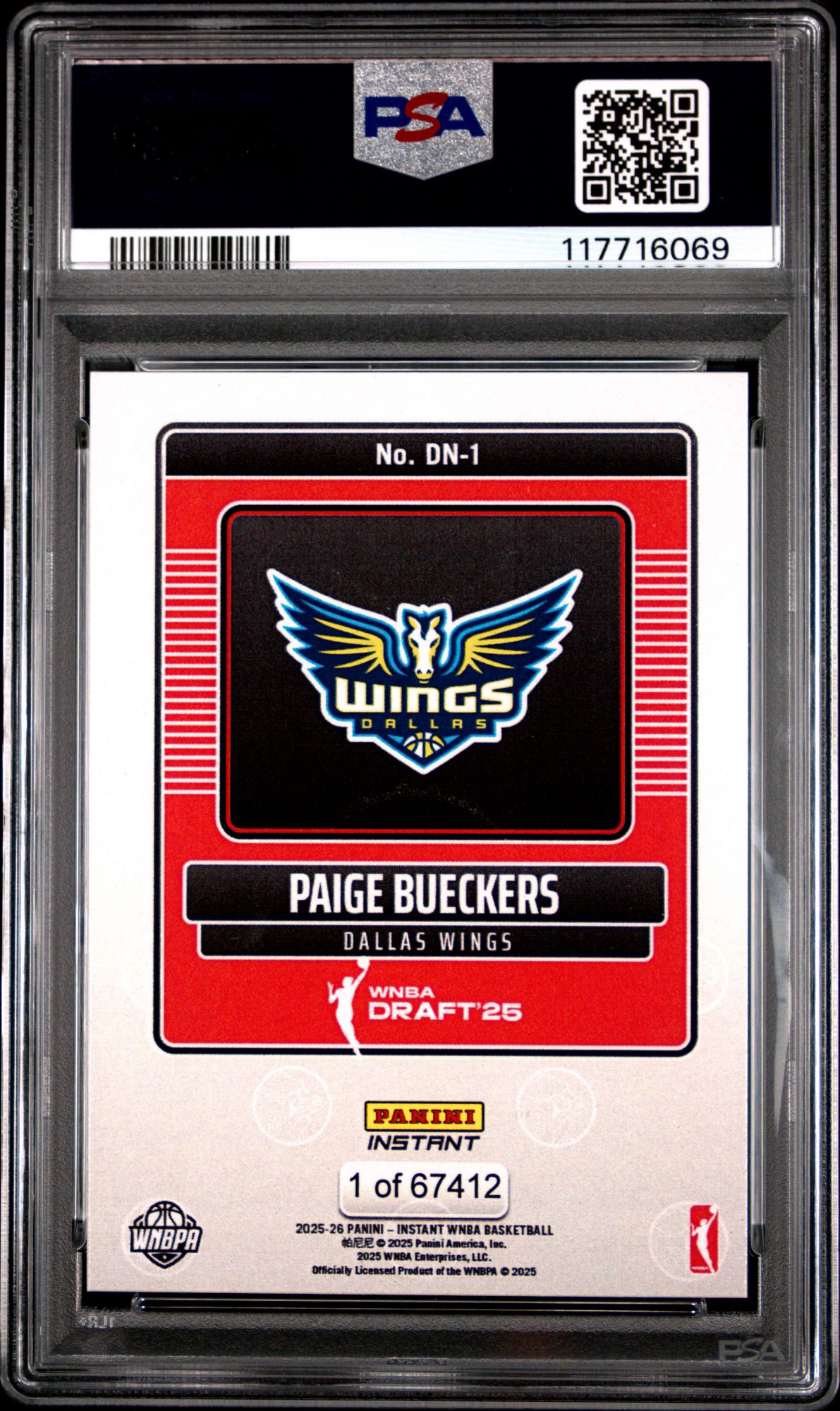 2025 Panini Instant WNBA Draft Night Dn1 Paige Bueckers PSA 10