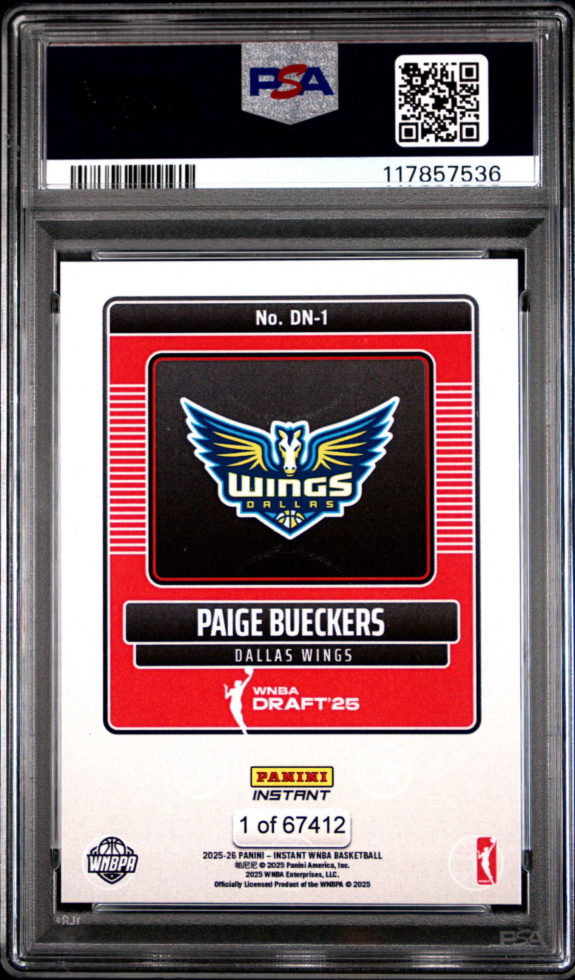 2025 Panini Instant WNBA Draft Night Dn1 Paige Bueckers PSA 10