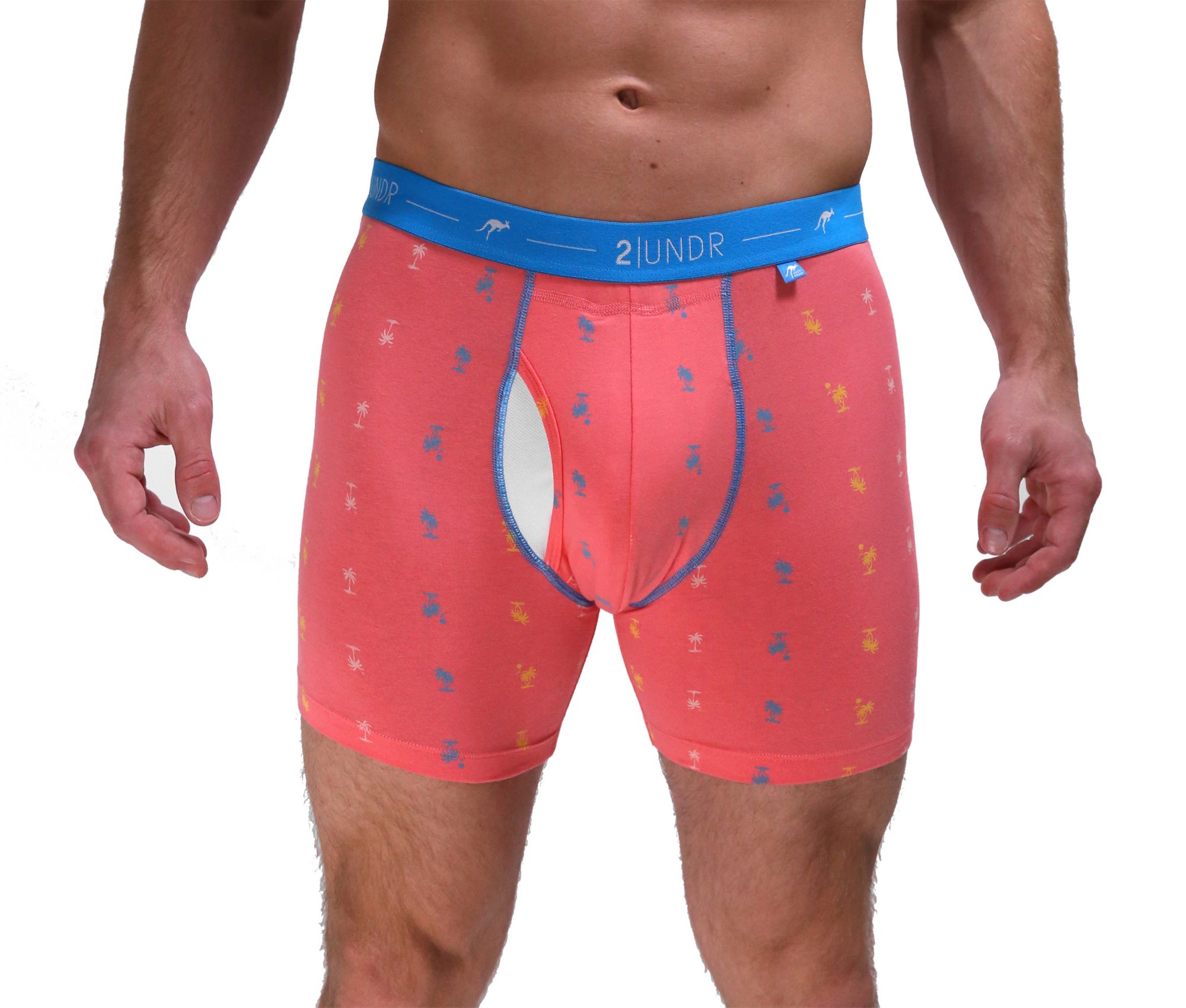 Tackle your day with the total comfort of 2UNDR™ Men’s Day Shift Printed 6’’ Boxer Briefs. These stylish printed boxer briefs are designed with Modal and cotton fibers so you can experience a soft, breathable feeling all day. A quick access front fly and patented Joey Pouch™ increase support and comfort while adding convenience. 4-way stretch construction doesn’t limit your mobility, while flatlock seams reduce discomfort.