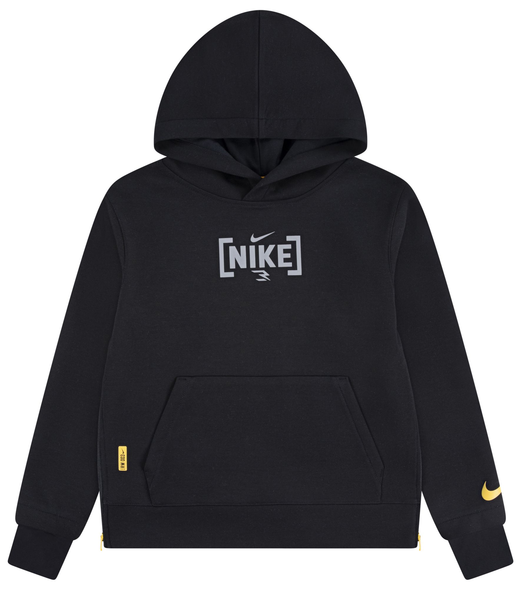 The Nike 3Brand by Russell Wilson Tech Training Hoodie is built for performance and comfort. Made from smooth spacer knit fabric, it features zip-up sides for adjustable movement, a kangaroo pocket, and cuffs with thumbholes for a secure fit. Finished with an attached hood and Nike 3Brand logo on the chest, it’s ready for training or everyday wear.