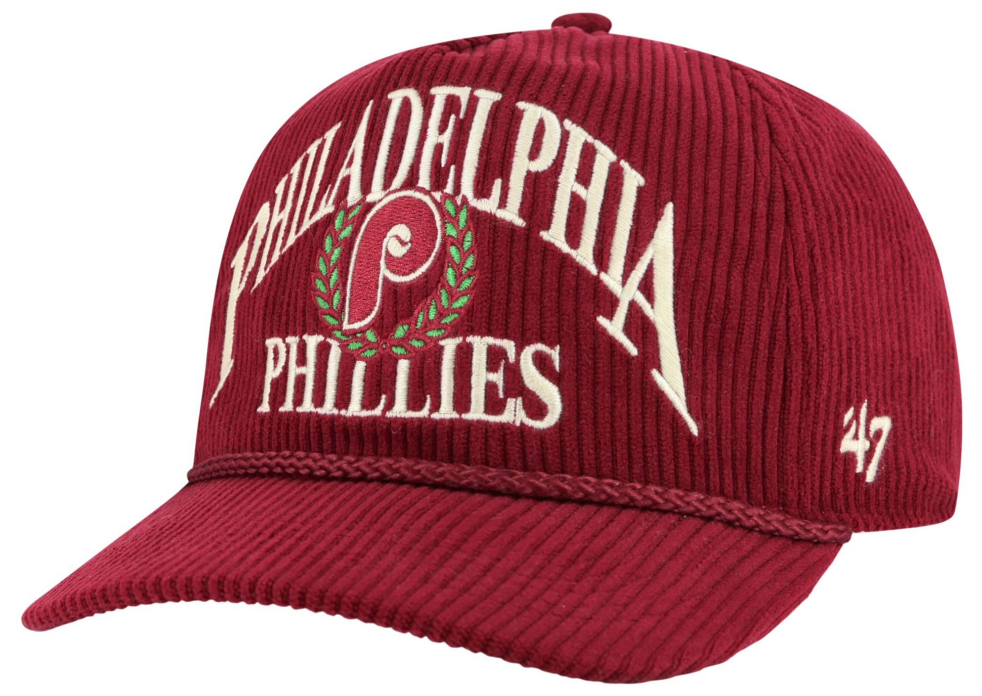 '47 Adult Philadelphia Phillies Maroon Cooperstown Pitch Out Rope Hitch Adjustable Hat
