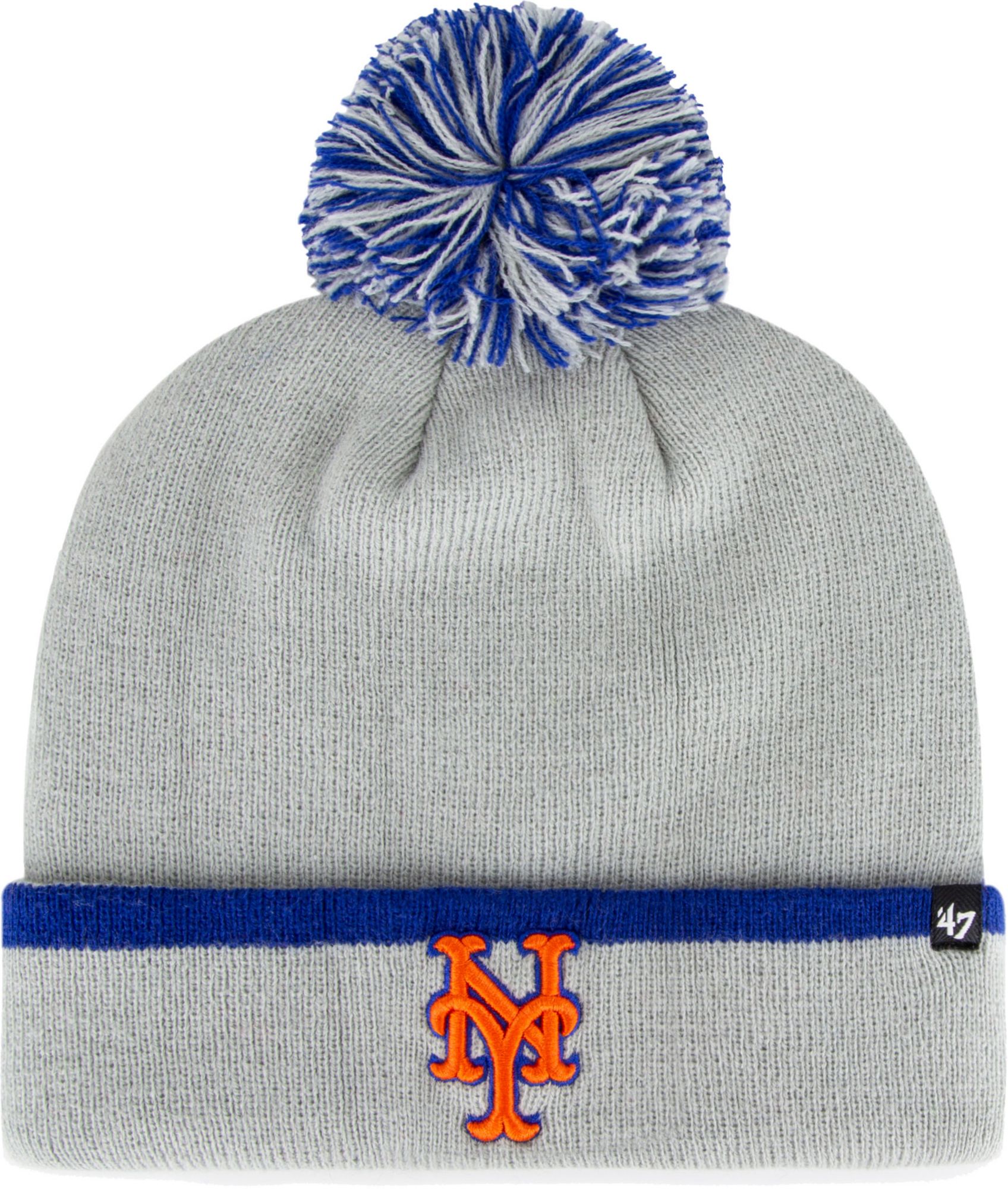 ‘47 Men's New York Mets Grey Bar Cuffed Knit Pom Hat