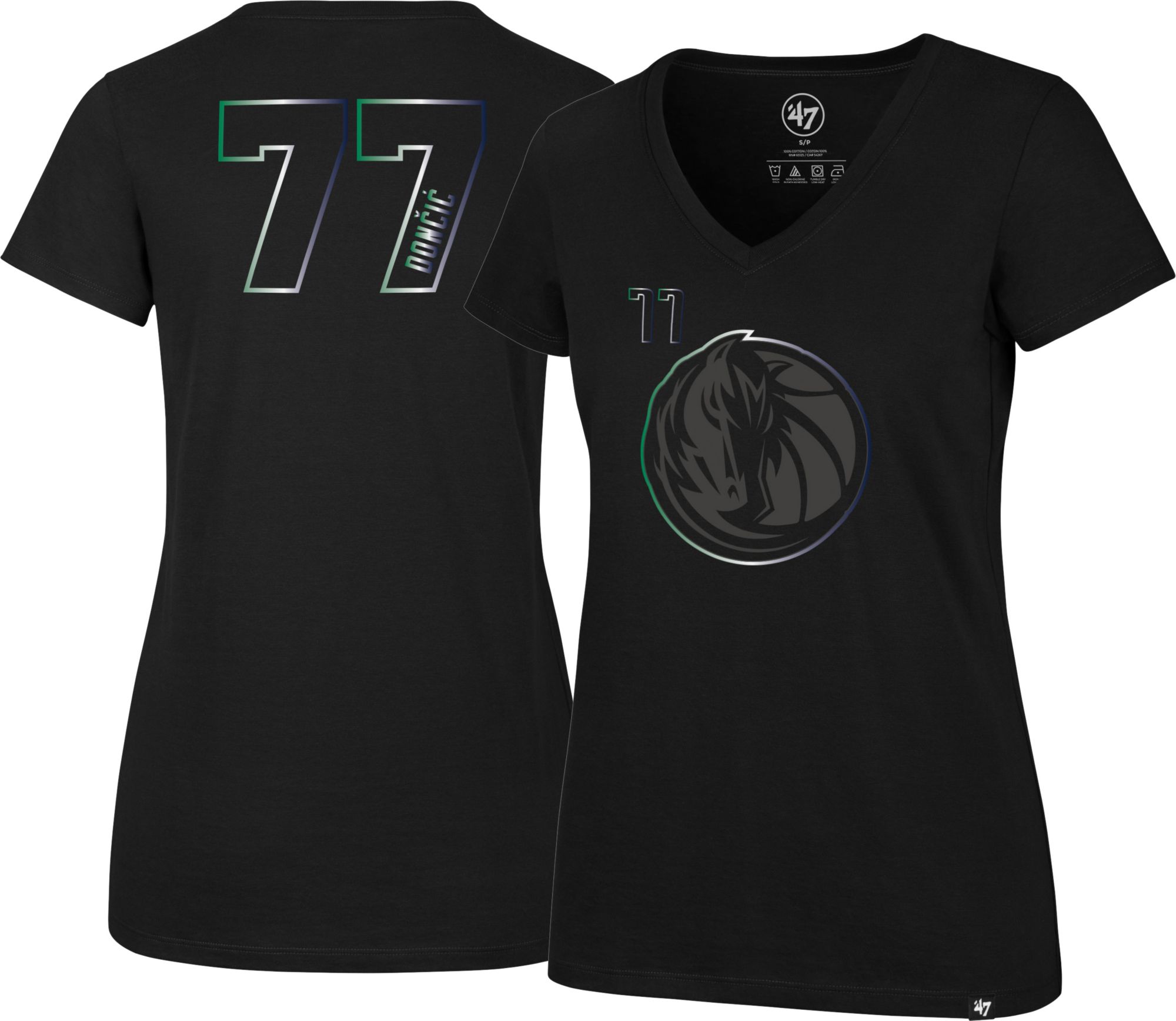'47 Women's 2021-22 City Edition Dallas Mavericks Luka Doncic #77 Black T-Shirt
