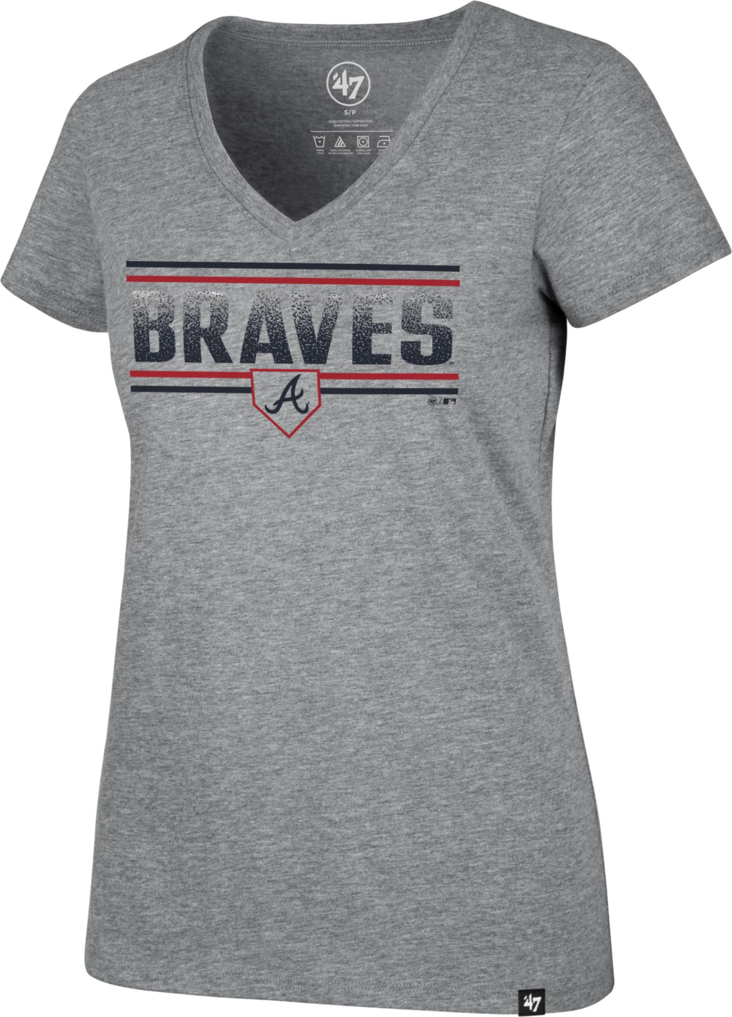 '47 Women's Atlanta Braves Gray Dazzle Rival V-Neck T-Shirt
