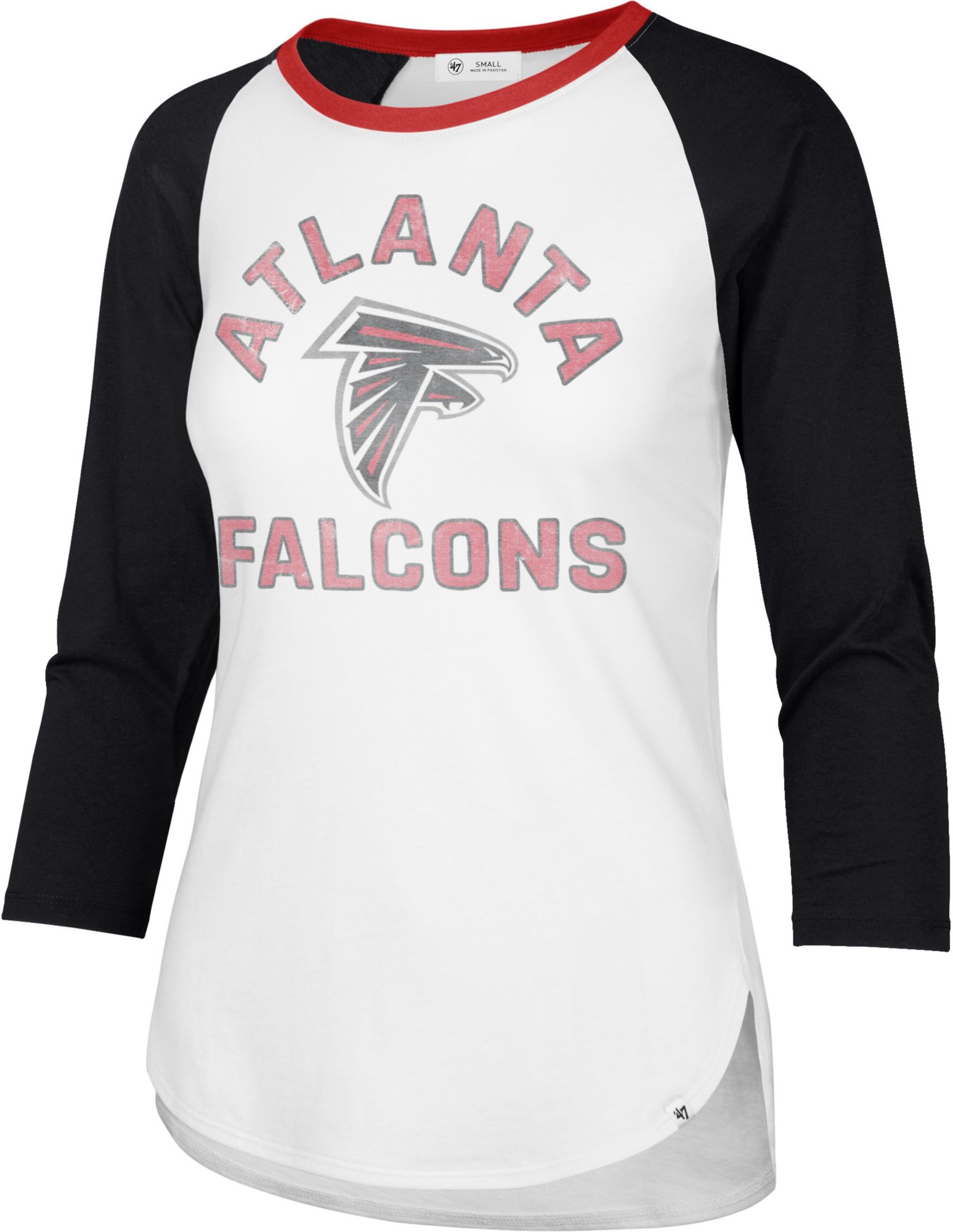 ‘47 Women's Atlanta Falcons White Wash Raglan Three-Quarter Sleeve T-Shirt