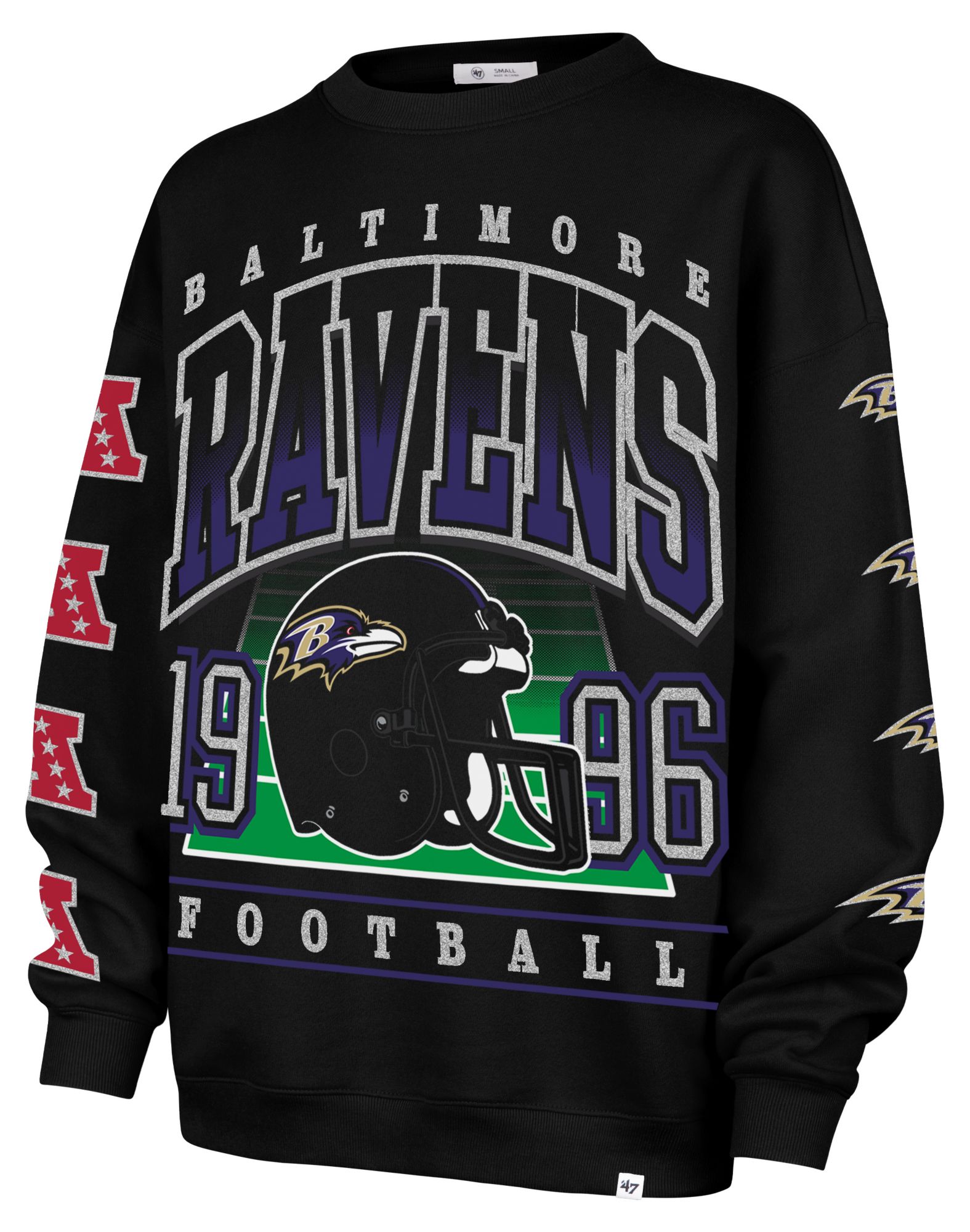 '47 Women's Baltimore Ravens Black 'Go Big' Crew Pullover Sweatshirt