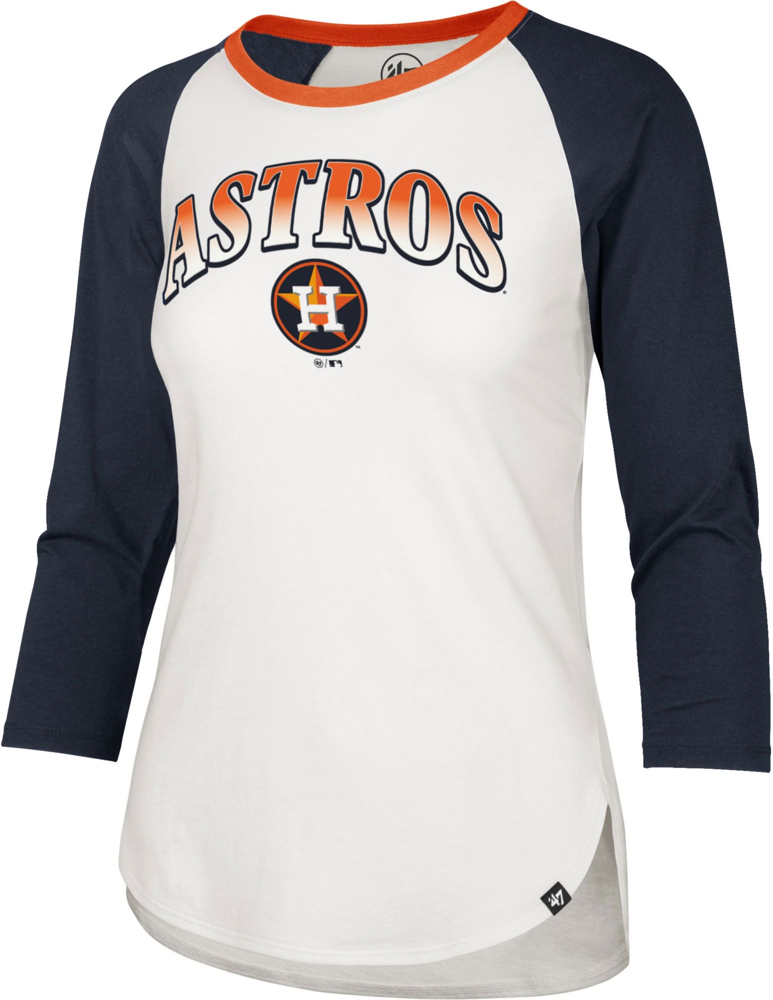 Stay stylish this season in a classic baseball tee with a feminine twist in the ‘47® Women’s Houston Astros Splitter Raglan Three-Quarter Sleeve T-Shirt.