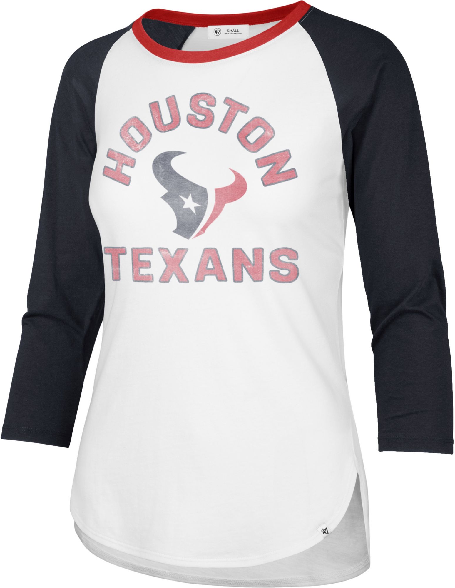 ‘47 Women's Houston Texans White Wash Raglan Three-Quarter Sleeve T-Shirt