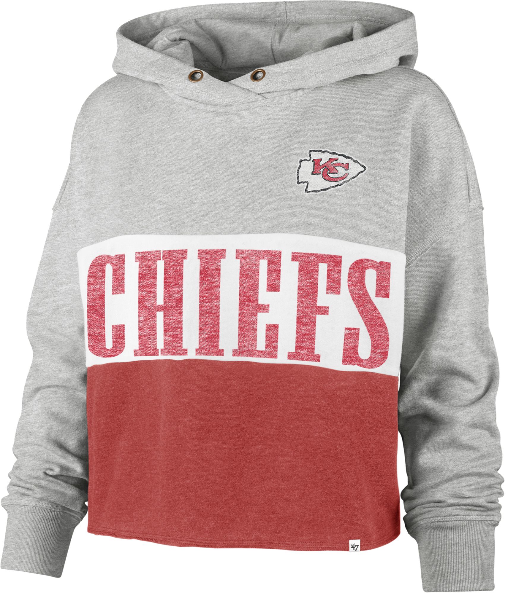'47 Women's Kansas City Chiefs Grey Lizzy Cut Off Hoodie