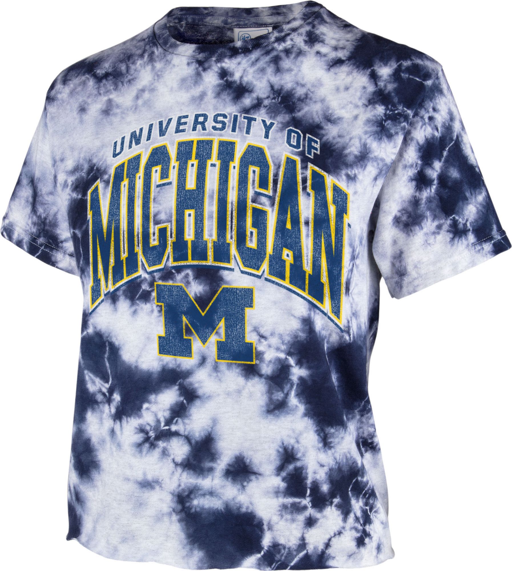 ‘47 Women's Michigan Wolverines Blue Cropped Tie-Dye T-Shirt