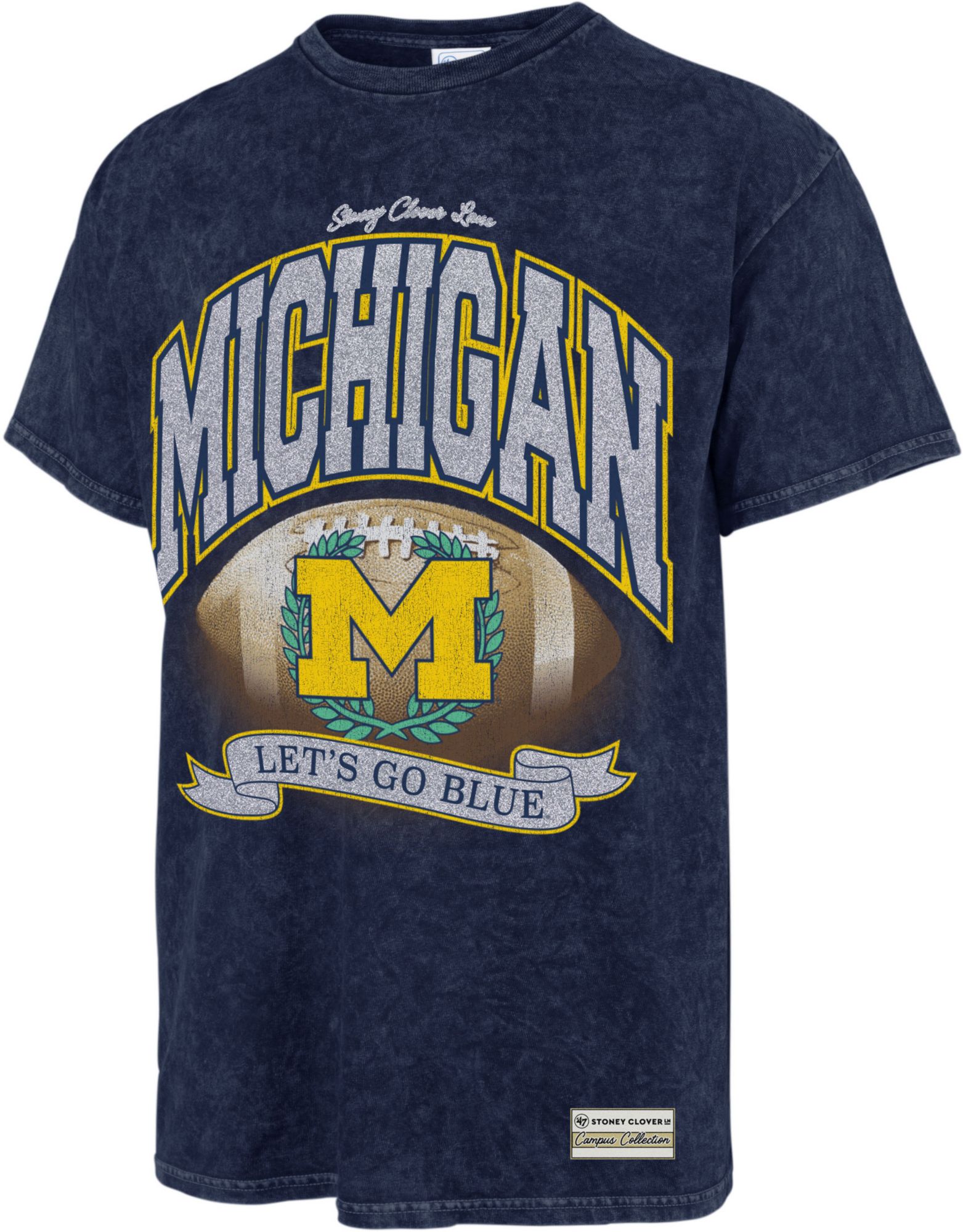 '47 x Stoney Clover Lane Women's Michigan Wolverines School Glitter Vintage Navy T-Shirt