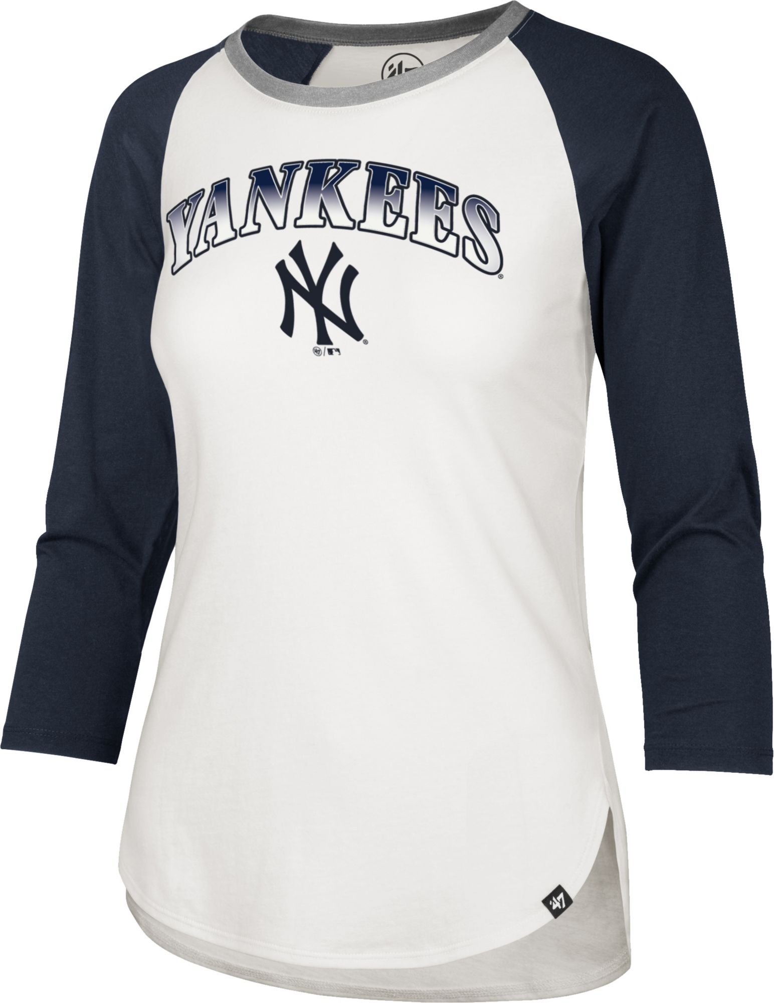 Stay stylish this season in a classic baseball tee with a feminine twist in the ‘47® Women’s New York Yankees Splitter Raglan Three-Quarter Sleeve T-Shirt.