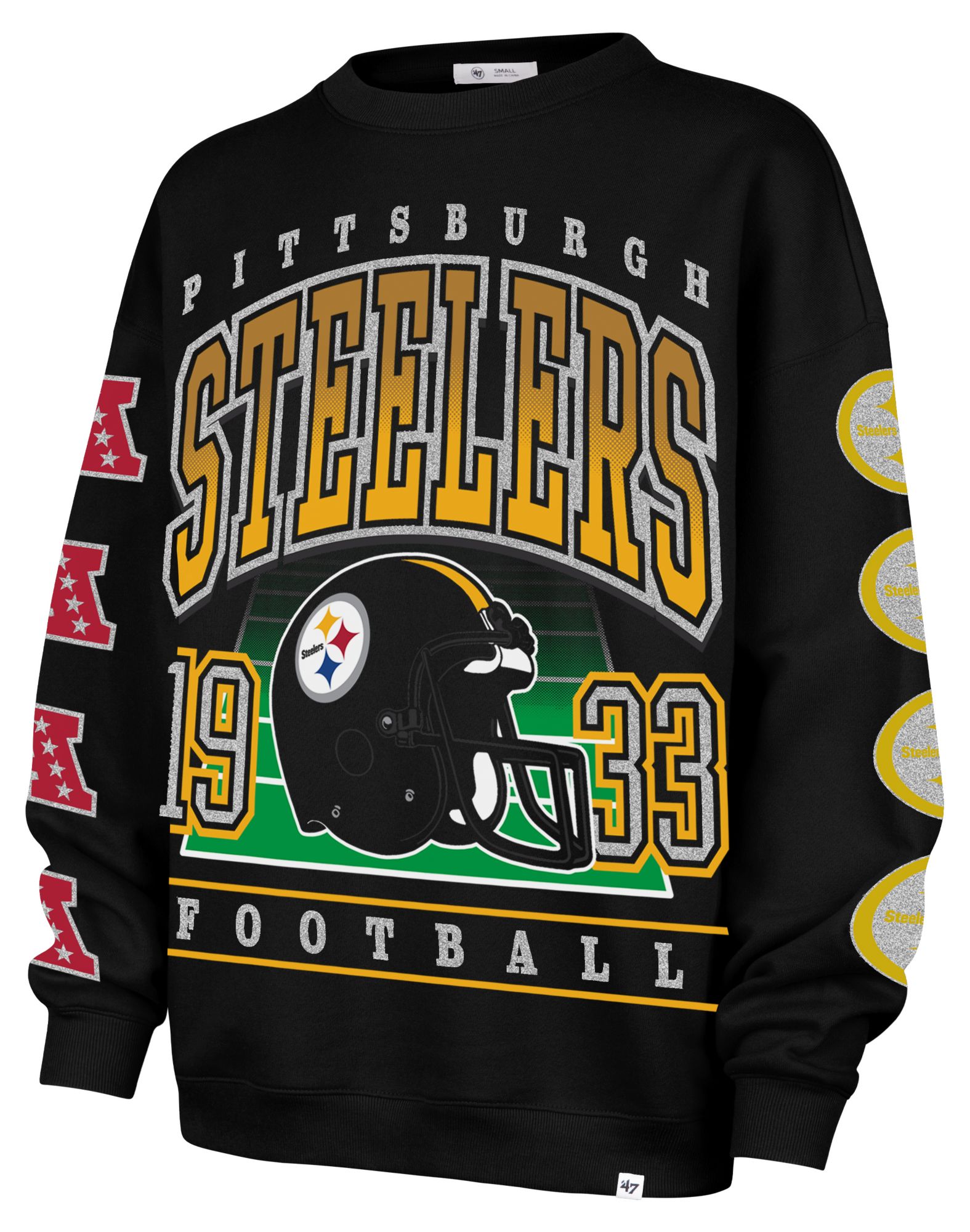 '47 Women's Pittsburgh Steelers Black 'Go Big' Crew Pullover Sweatshirt