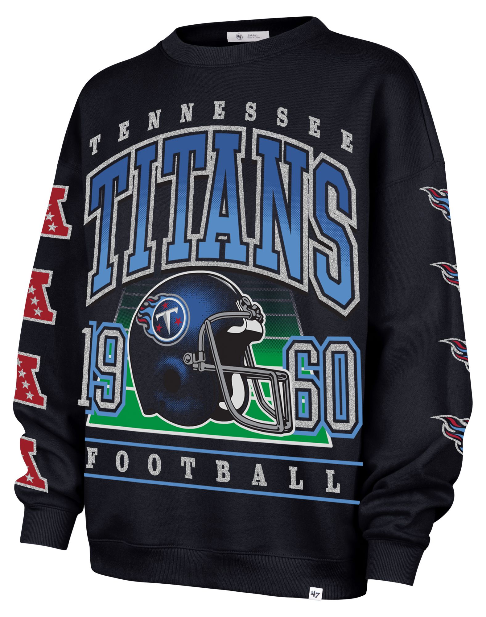 '47 Women's Tennessee Titans Navy 'Go Big' Crew Pullover Sweatshirt
