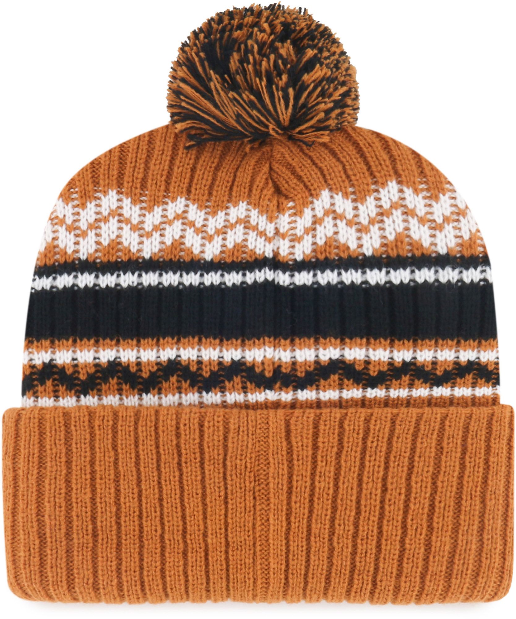 Team-colored panels and pom pom