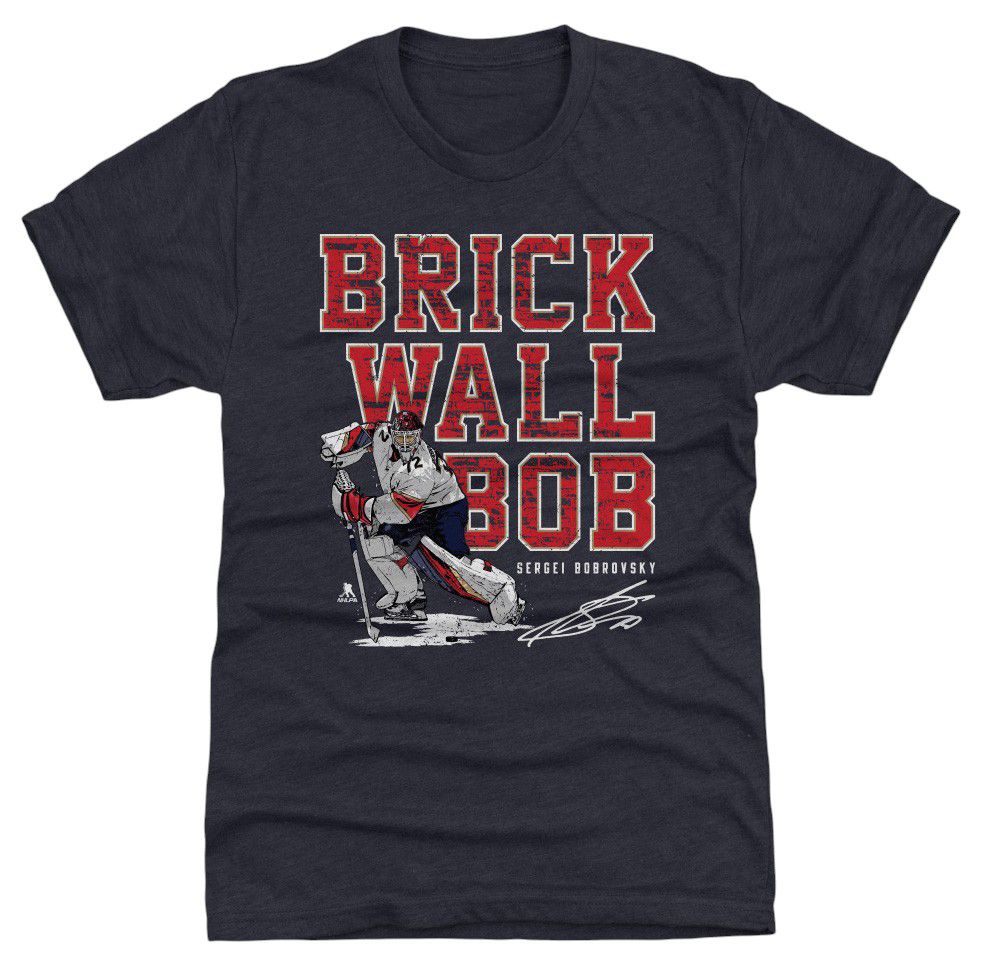 500 Level Adult Florida Sergei Bobrovsky #72 Brick Wall Navy T-Shirt