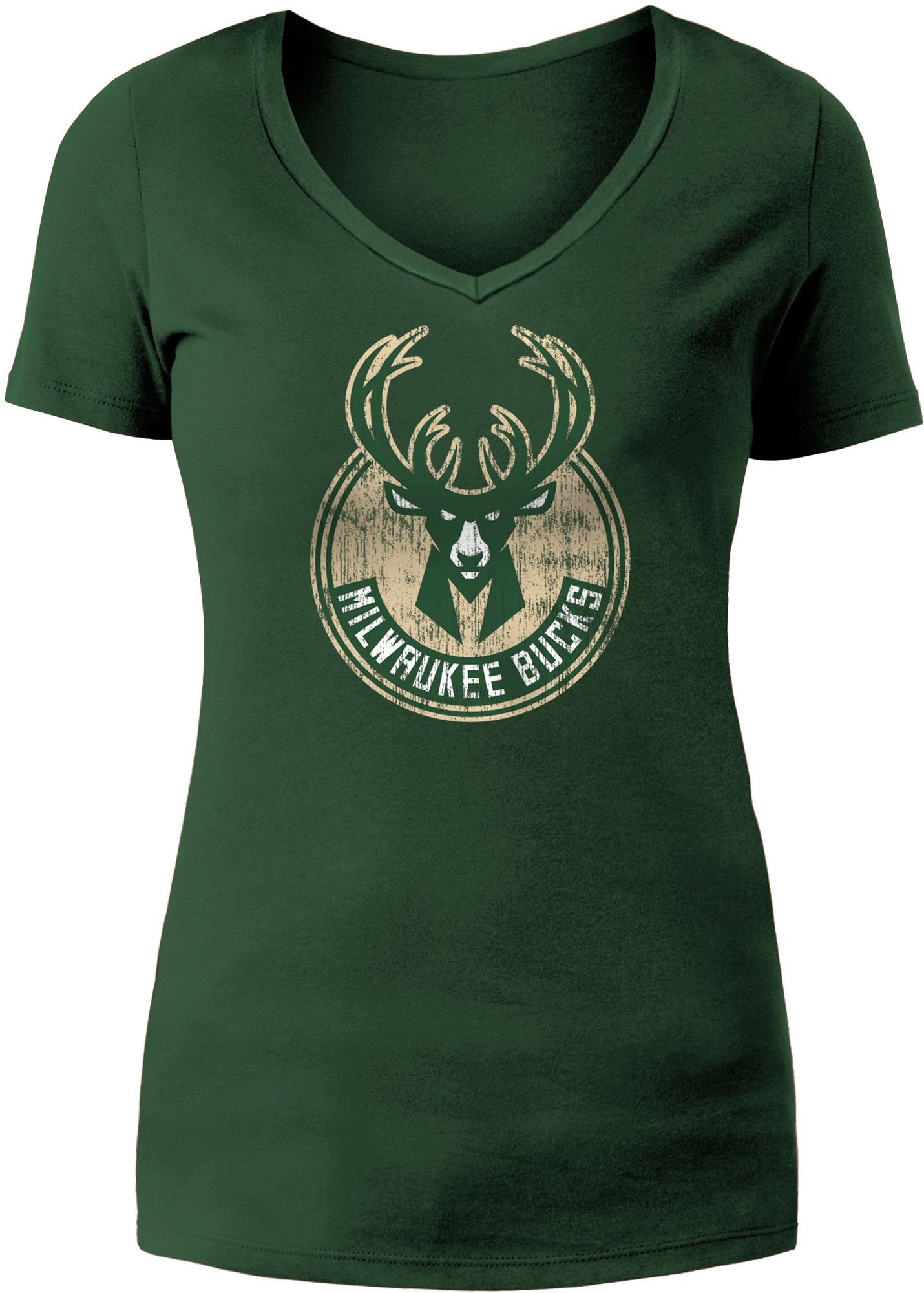 5th & Ocean Women's Milwaukee Bucks Green V-Neck T-Shirt