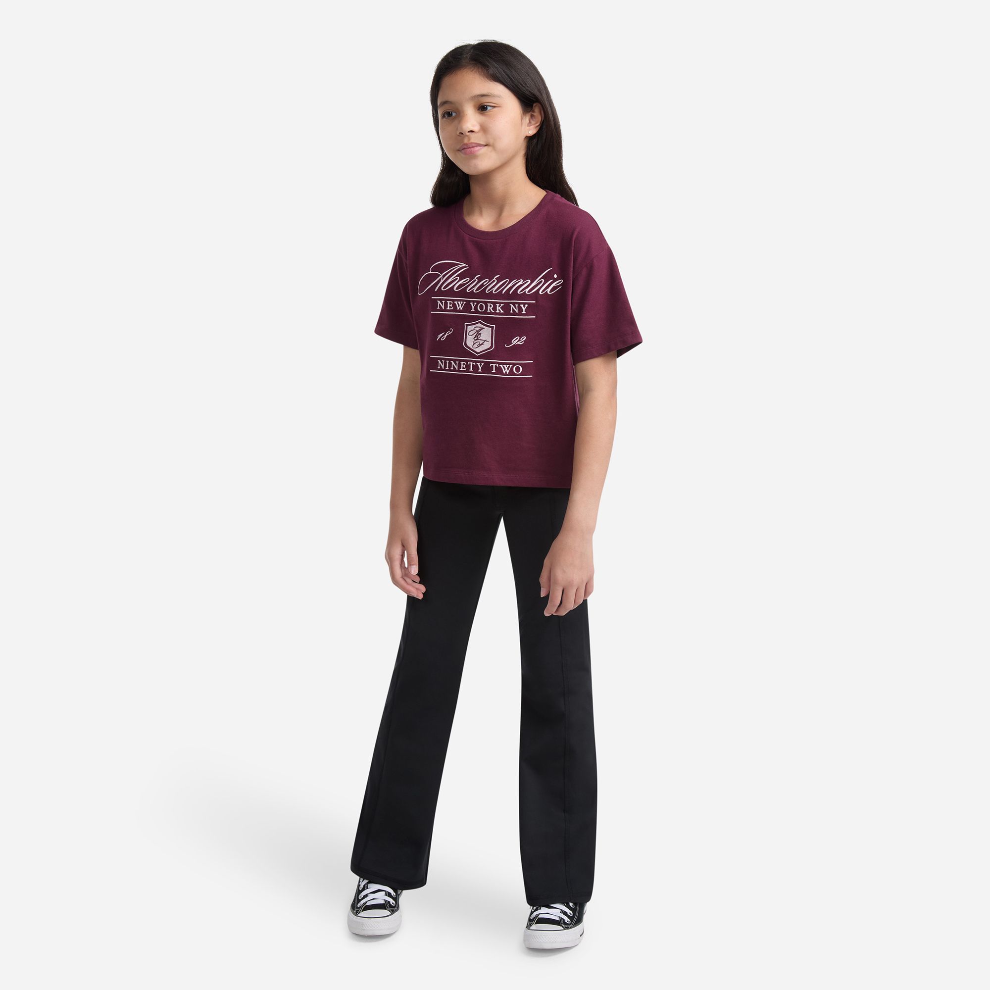 Elevate your child's casual style with abercrombie kids trendy Boxy Tee. Soft jersey fabric ensures comfort, while the round collar and short sleeves keep it classic. The modern boxy fit offers easy movement, and the cool Abercrombie graphic adds a touch of brand flair. Perfect for everyday adventures!