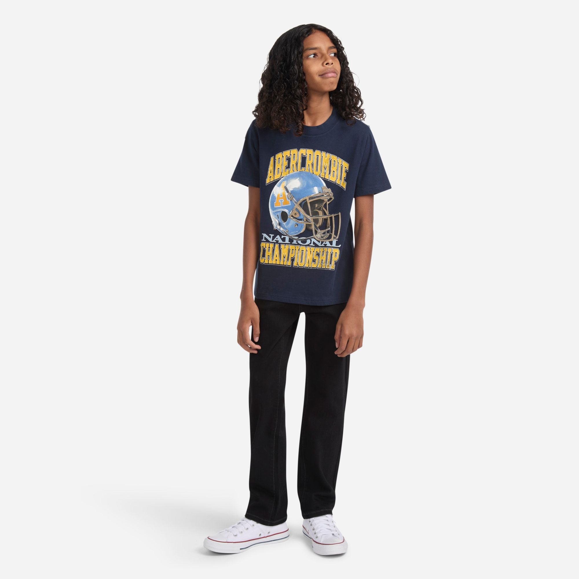Inspire your young champion with abercrombie kids Championship Tee! Soft jersey fabric and a ribbed collar ensure comfort, while short sleeves keep them cool. The bold Abercrombie graphic celebrates their winning spirit. Perfect for active kids who love to stand out and dream big!