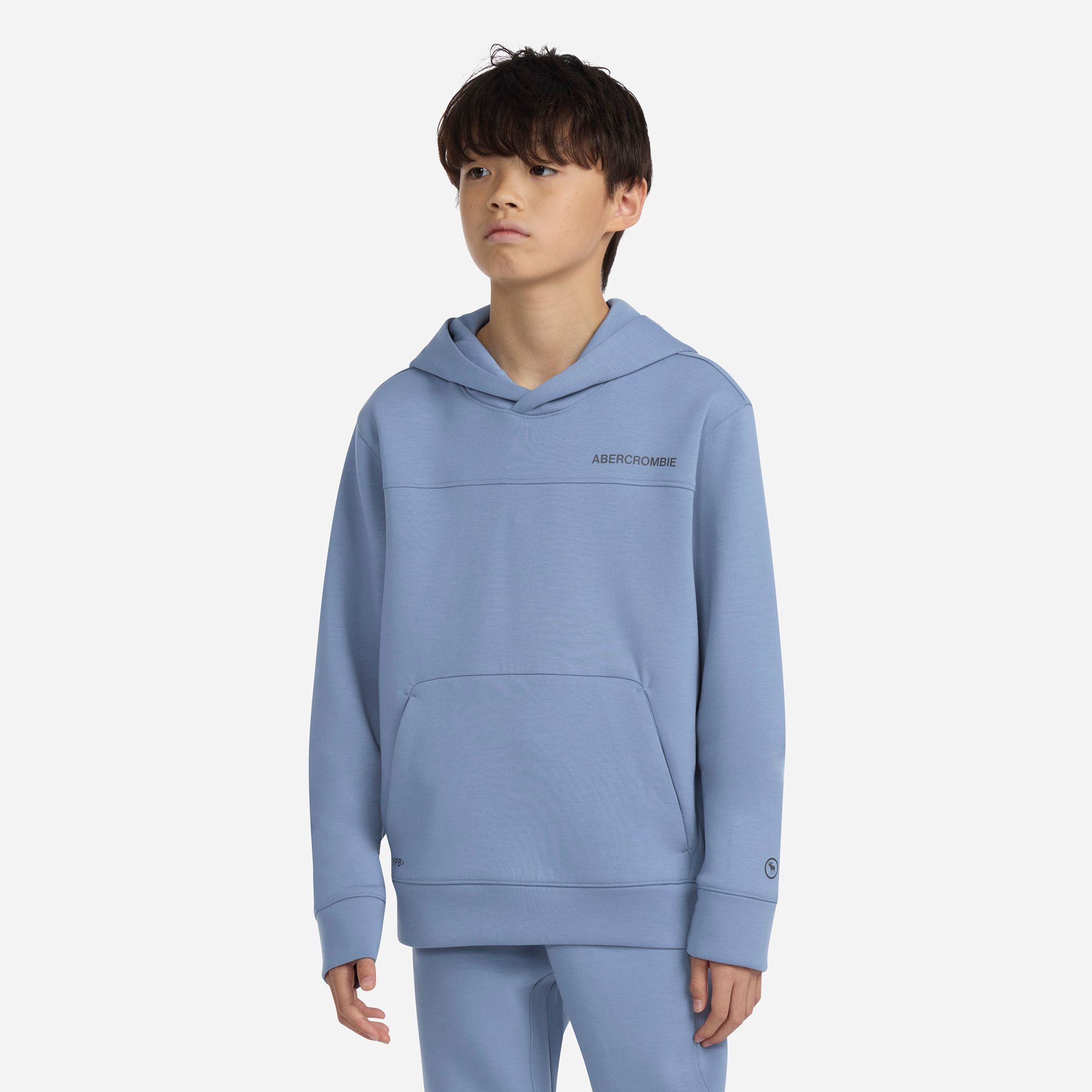 Upgrade your kid's wardrobe with abercrombie kids Neoknit Technical Pullover Hoodie! Advanced Neoknit Scuba fabric offers unbeatable comfort and flexibility. Elastic cuffs and hem ensure a perfect fit, while the kangaroo pocket adds practicality. The attached hood completes this must-have look!