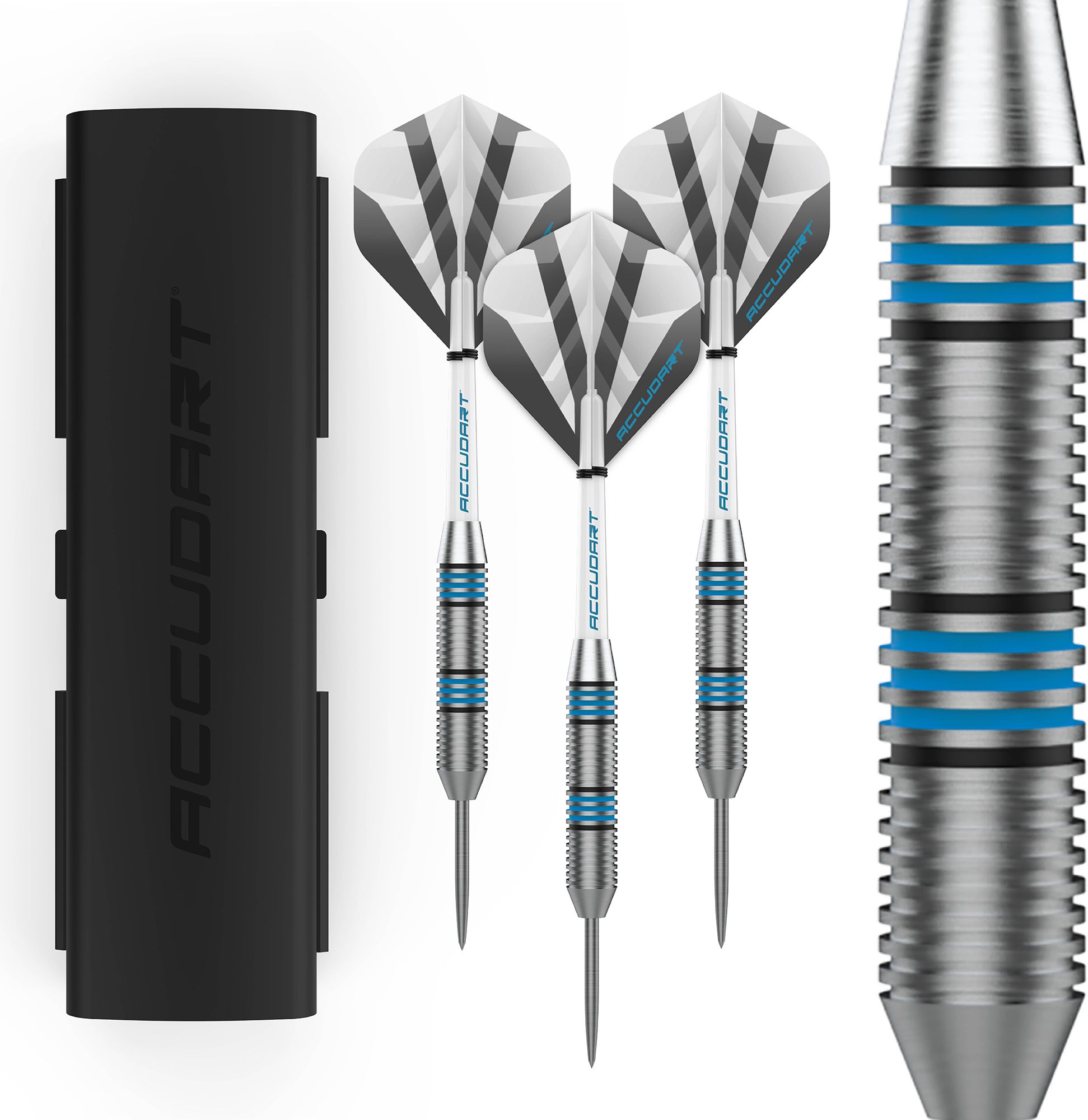 Stainless Steel finish barrel that includes steel tip points ideal for bristle dartboards