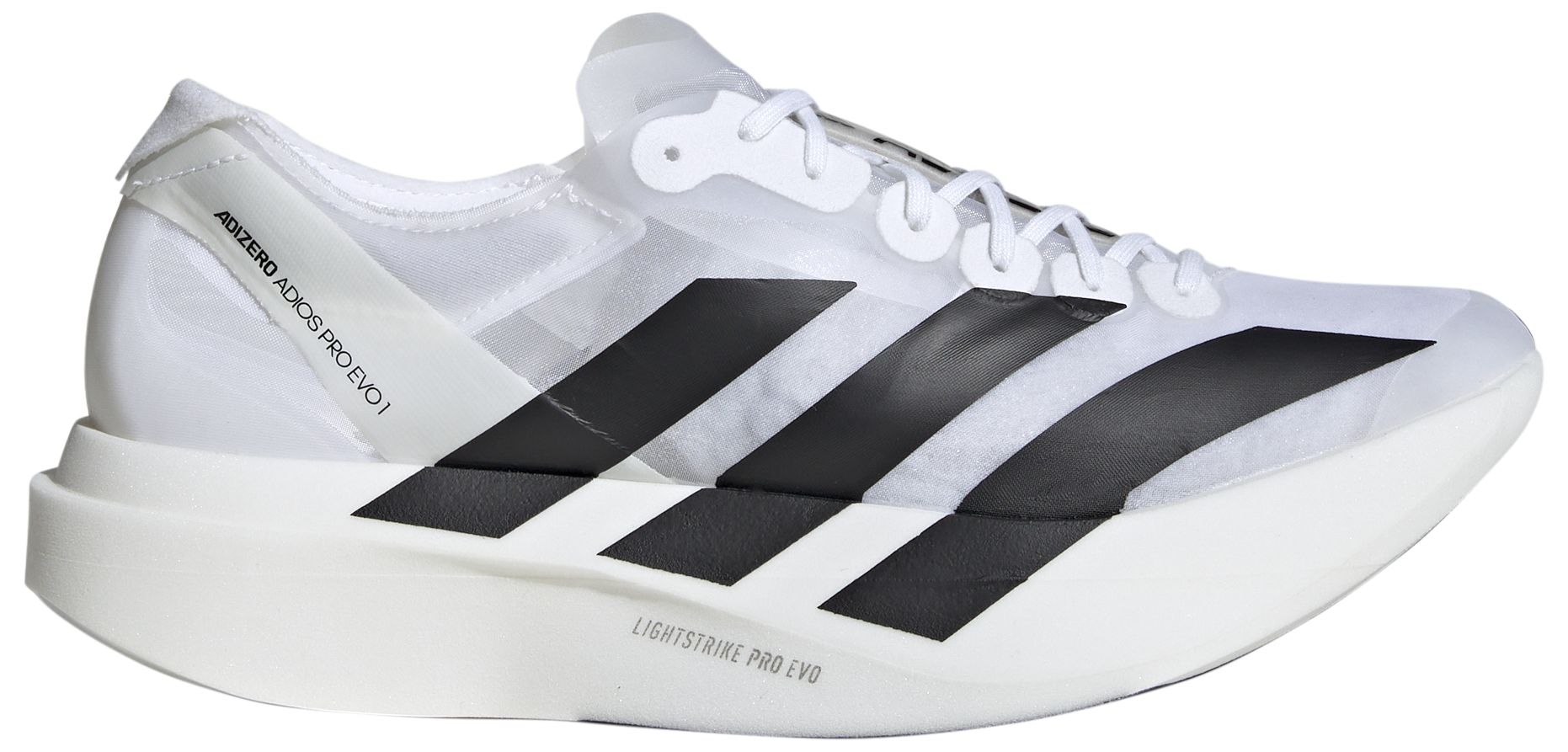 Astonishingly light. Shamelessly fast. The adidas Adizero Adios Pro Evo 1 is a new class of race shoe, designed to help ambitious marathon runners leave it all on the course. It's 40% lighter than any race shoe adidas® has created, weighing in at just 138g of pure innovation. Lightstrike Pro foam is paired with cutting-edge outsole technology, featherlight mesh and a first-of-its-kind forefoot rocker that's lab-tested to improve running economy. The Adizero Adios Pro Evo 1 is the future of running, and it's ready to race.