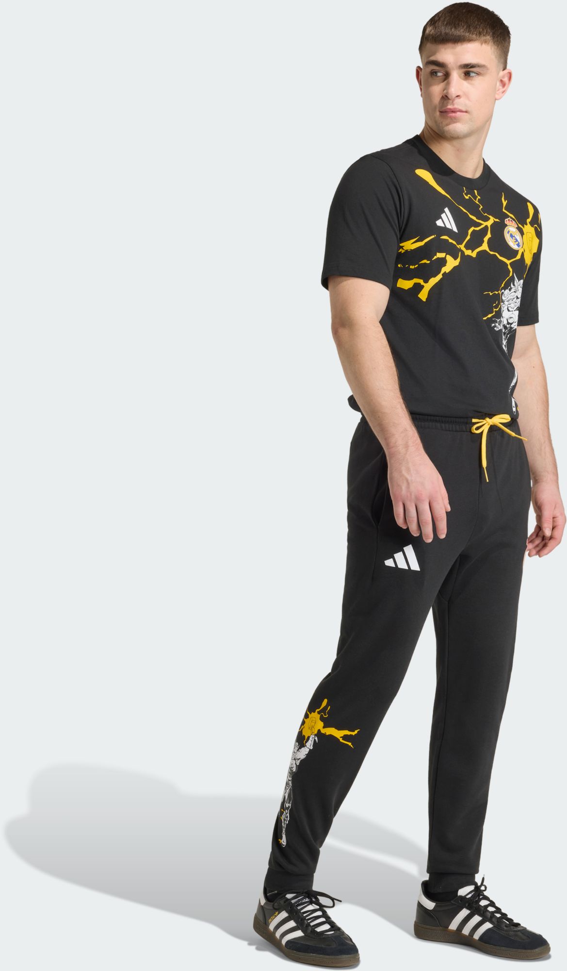 The pants are exactly as shown in the photo and the fit and length are perfect. These are my new favorite athletic-leisure pants. Love repping Real Madrid while having a great comfortable fit.