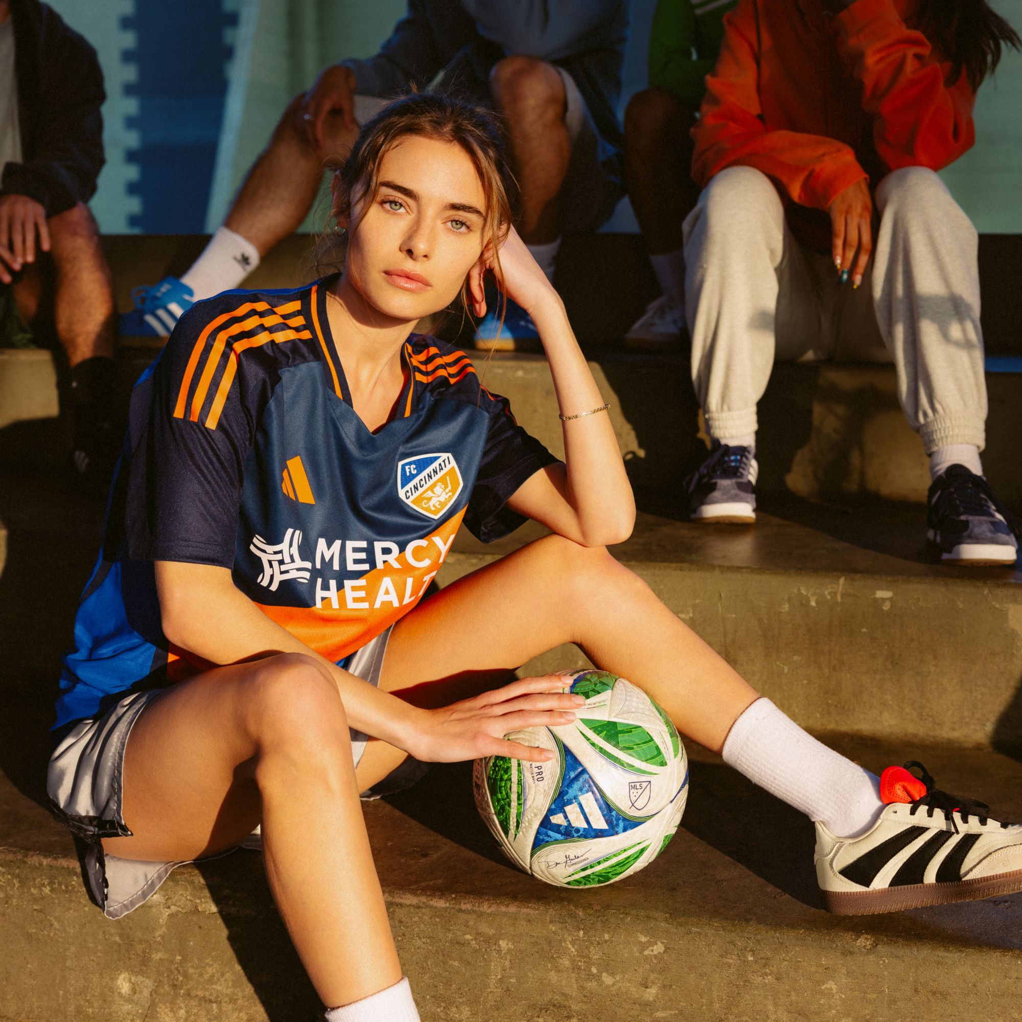Mark a decade of FC Cincinnati in this authentic jersey from adidas. Taking inspiration from the club's first ever shirt, it displays a bold tricolour design, while its lightweight fabric and moisture-managing AEROREADY support all-action football. Vying for attention with that vibrant sash and heat-applied team badge, a pair of sign-offs celebrates FCC heritage.This product is made with 100% recycled materials. By reusing materials that have already been created, we help to reduce waste and our reliance on finite resources and reduce the footprint of the products we make.