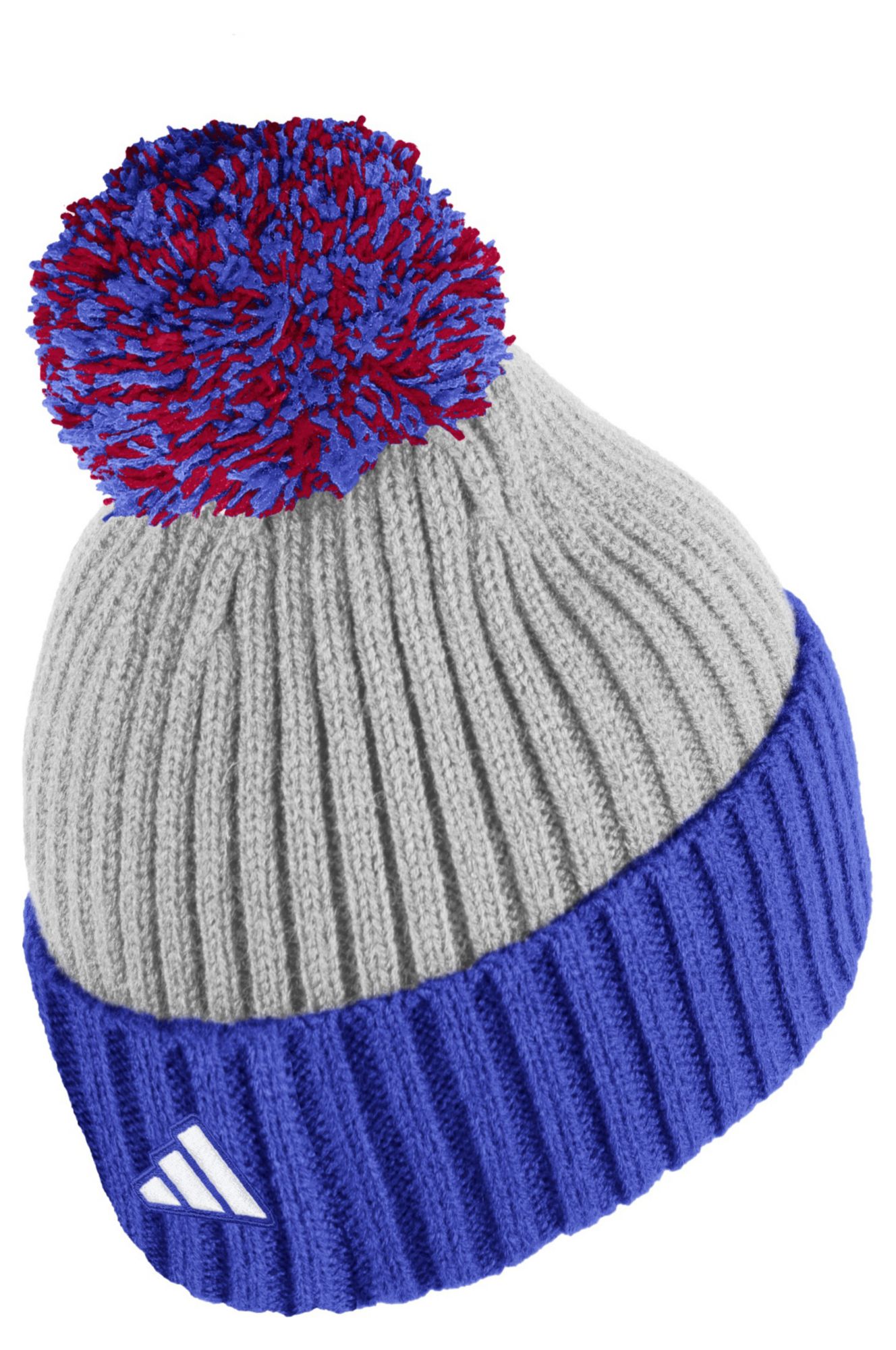 adidas Adult Kansas Jayhawks Grey Rib Pom Knit Beanie