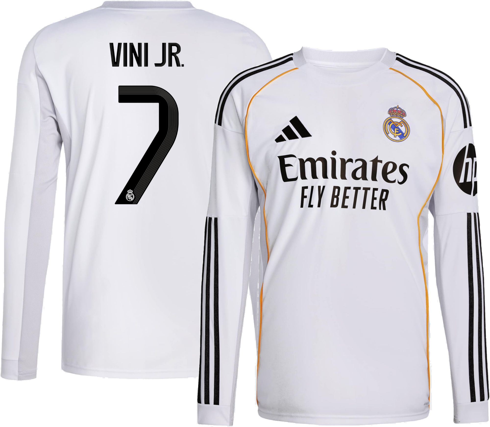 adidas Adult Real Madrid Vinicius Junior #7 2025 Home Long Sleeve Replica Jersey