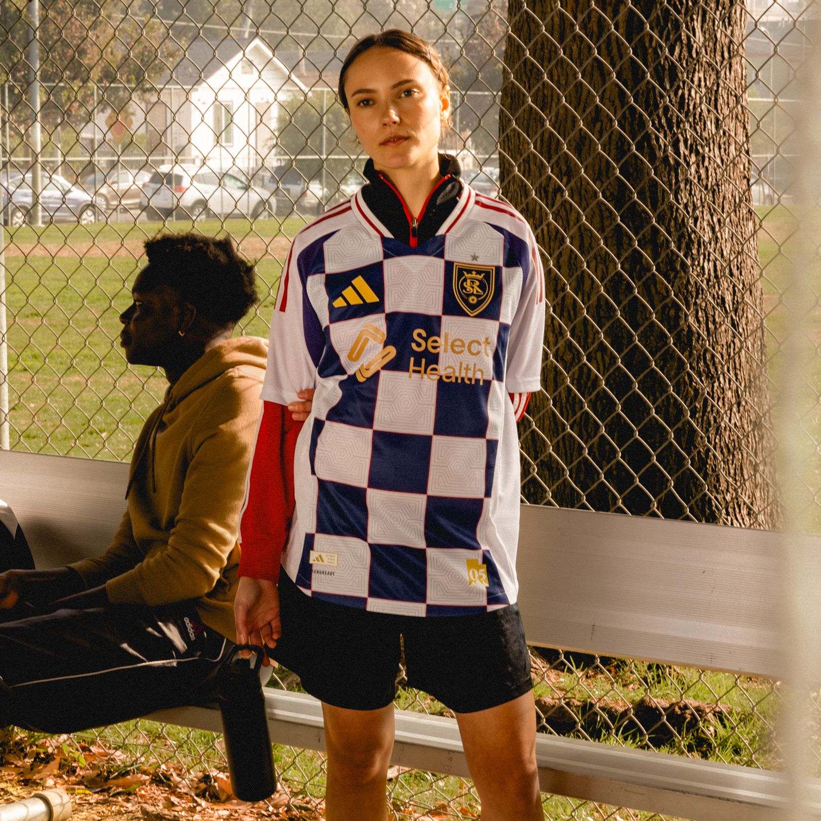 A tribute to their home. The bold chequered pattern on this adidas Real Salt Lake away authentic jersey reflects the grid structure of the club's home city, while those intricate, tonal details within it nod to the Beehive State. A heat-applied team badge and a pair of eye-catching sign-offs share your football pride. Behind all that rich symbolism, AEROREADY is there to keep you dry on the field. This product is made with 100% recycled materials. By reusing materials that have already been created, we help to reduce waste and our reliance on finite resources and reduce the footprint of the products we make.