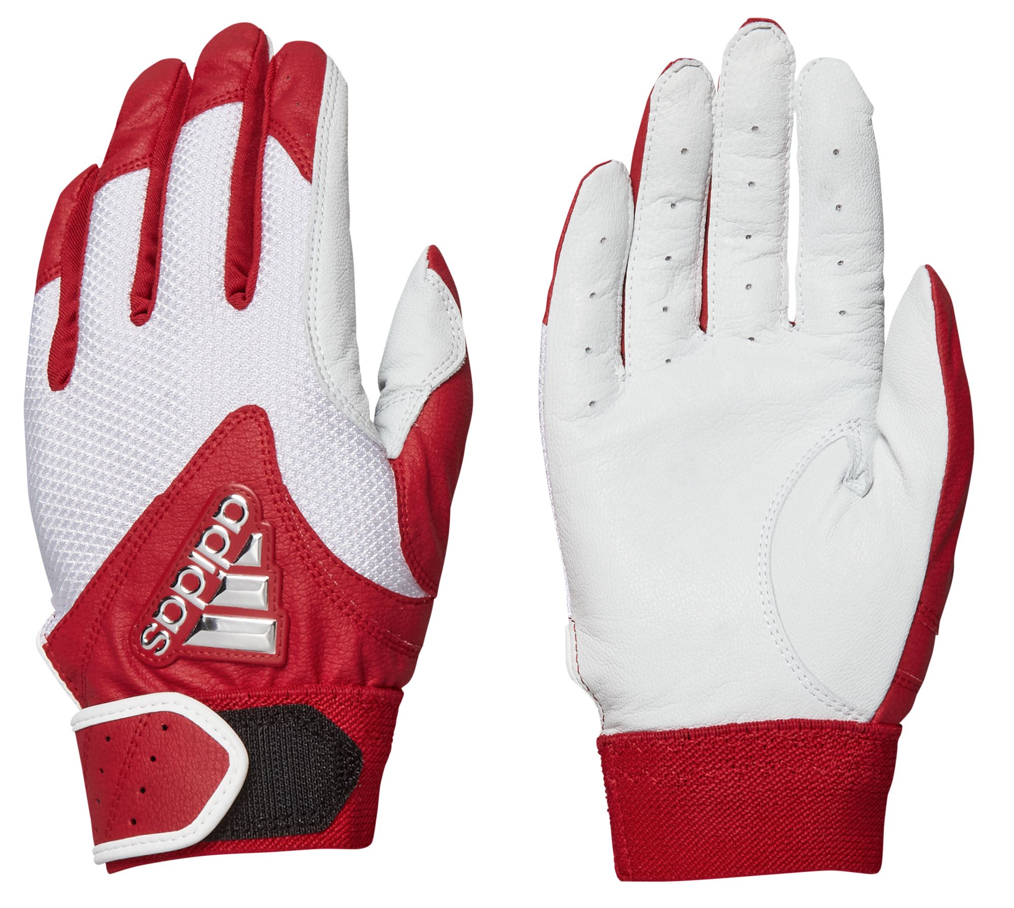 Flexibility, premium comfort, and protection are all key factors that make the adidas® Trilogy Batting Gloves an excellent go-to when taking your stance in the box this season. Outfitted with leather palms and pre-curved fingers, these gloves provide a natural grip and consistent cushioning to rip the ball into the outfield with ease.