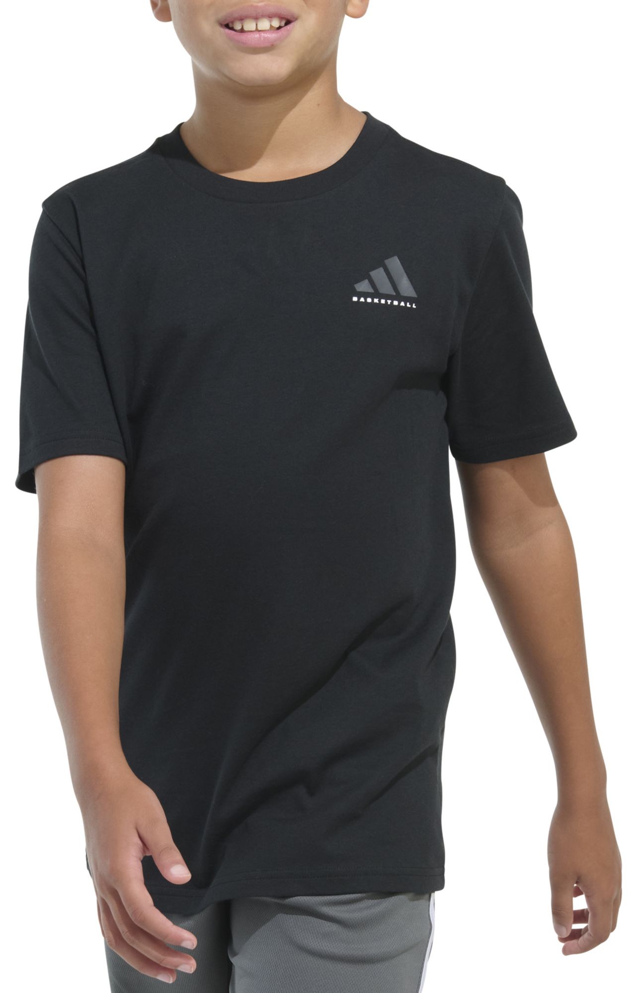 Hoop dreams are brought to life with a B-ball design on this boys' adidas t-shirt. Because basketball is what he's all about. Soft cotton jersey feels lived in from the start.