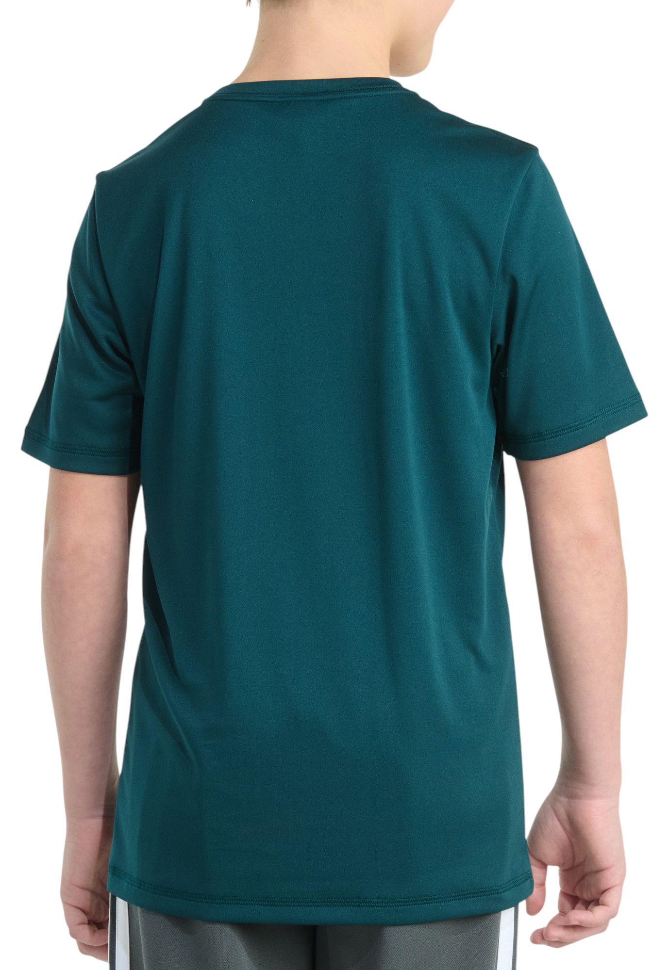 Triple the style points. This boys' short sleeve t-shirt displays triple-stacked adidas logos. A comfortable polyester tee for downtime or anytime, it has a smooth feel and a regular fit.