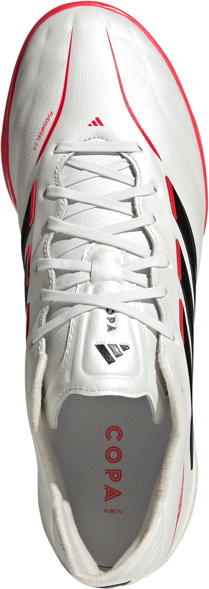 Copa Pure IV Pro represents a touch of class for the architect. Its Fusionfeel 2.0 upper provides an improved leather material for enhanced softness with a 3d Touchprint for added texture & haptic. The FORMIT anatomical sockliner ensures unmatched fit, while the free-floating tongue offers adjustability for maximum comfort. The rubber outsole is developed to free your touch on turf pitches (short-bladed synthetic fiber).