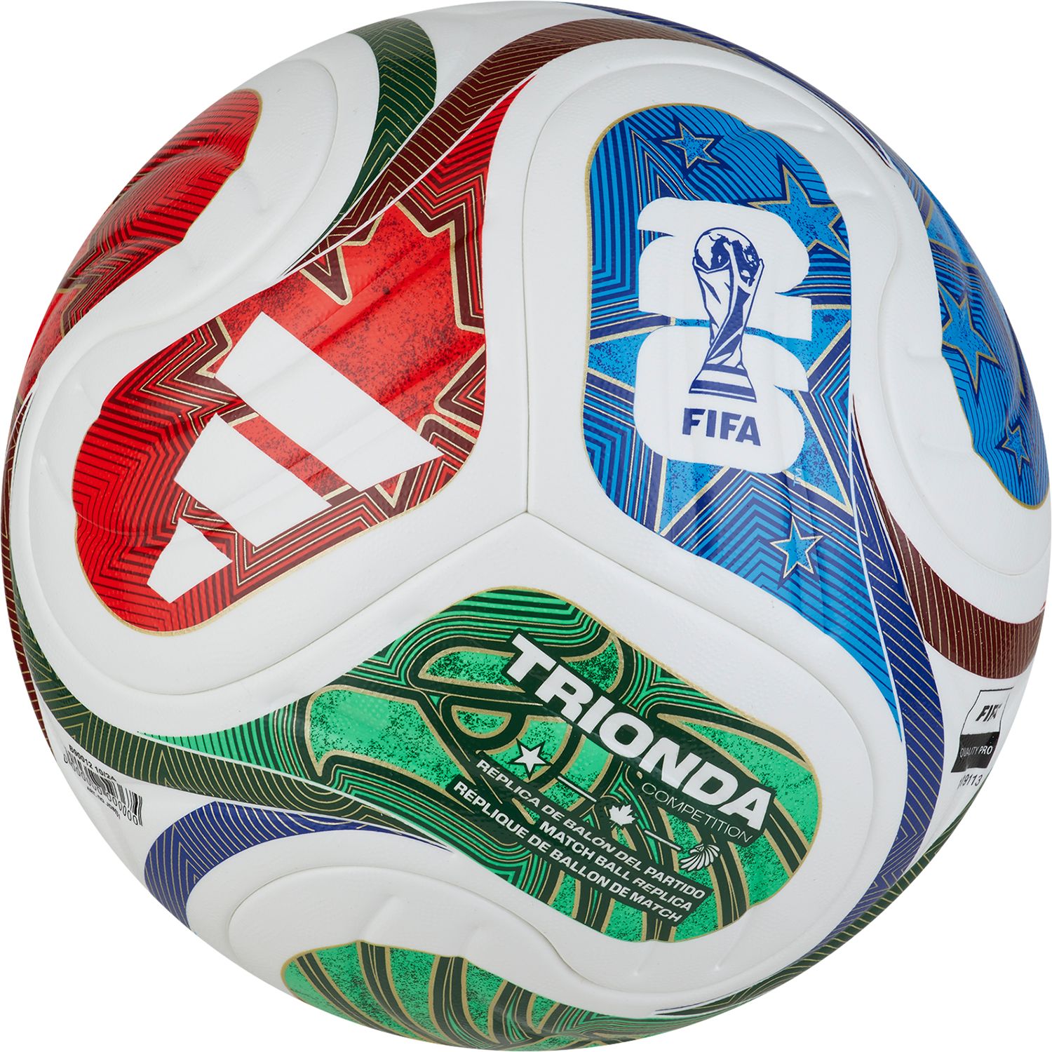 A spectacular sight first seen at sporting venues across the Americas, the iconic "la ola" wave inspires the flowing, four-panel design of this adidas Trionda Competition ball. Perfect for matches, it has a seamless surface with a fine texture and debossing for enhanced precision and in-flight stability. A nod to FIFA World Cup 26™'s three host countries, vibrant graphics mimic the look of the tournament's official match ball.