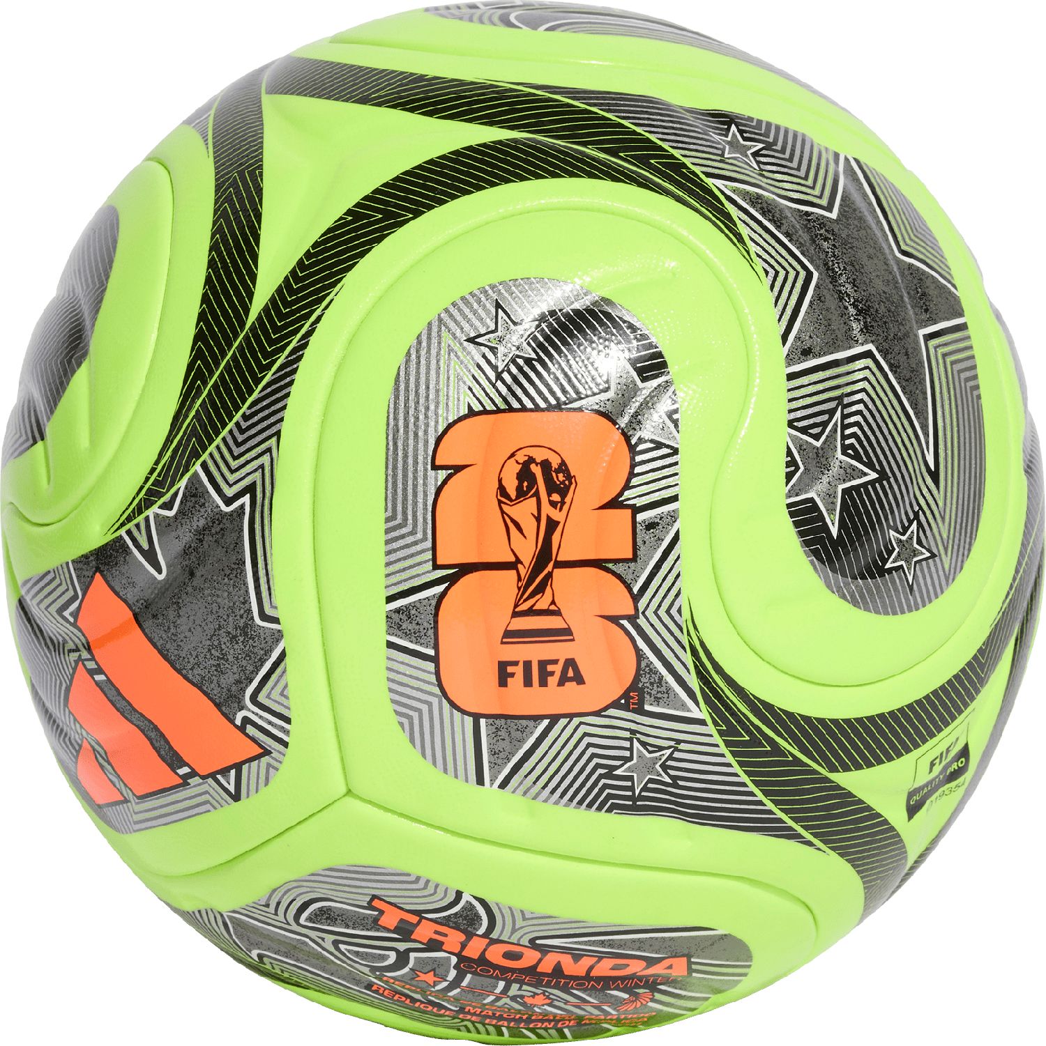 A spectacular sight first seen at sporting venues across the Americas, the iconic "la ola" wave inspires the flowing, four-panel design of this adidas Trionda Competition ball. Perfect for matches, it has a seamless surface with a fine texture and debossing for enhanced precision and in-flight stability. A nod to FIFA World Cup 26™'s three host countries, vibrant graphics mimic the look of the tournament's official match ball.