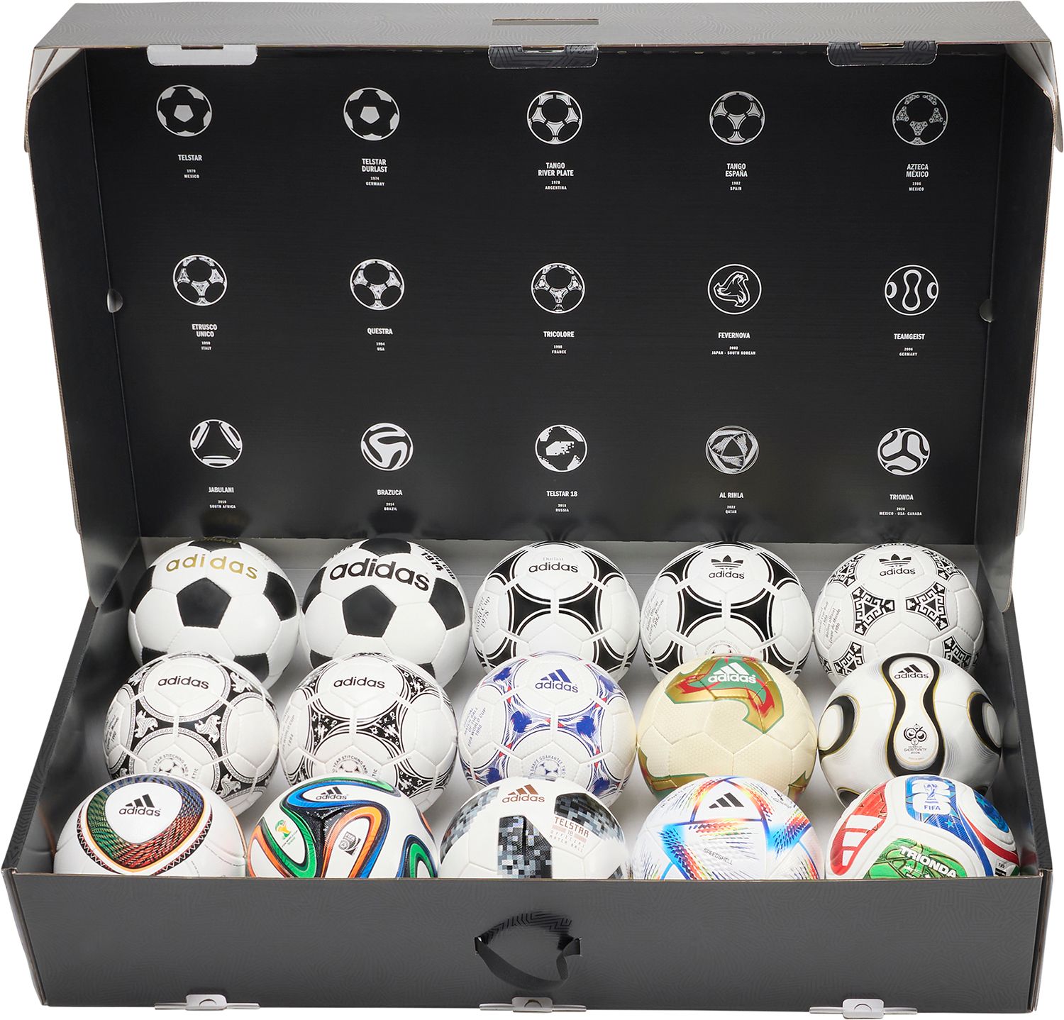 Spectacular sights first seen at sporting venues across the World, the iconic designs from the last 15 FIFA World Cup™’s. The official football of the FIFA World Cup™. Vibrant colors and bold national symbols represent the tournament's host countries.