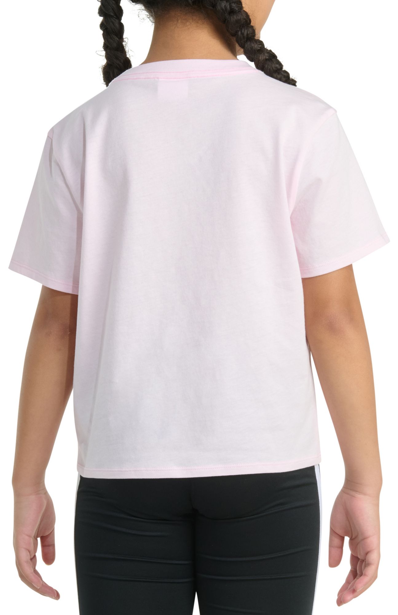 Comfortable to wear and simple to mix and match, this kids' adidas t-shirt for girls is all about ease. The soft all-cotton fabric has a regular cut. An embroidered "adidas" graphic in front shows 3-Stripes pride.
