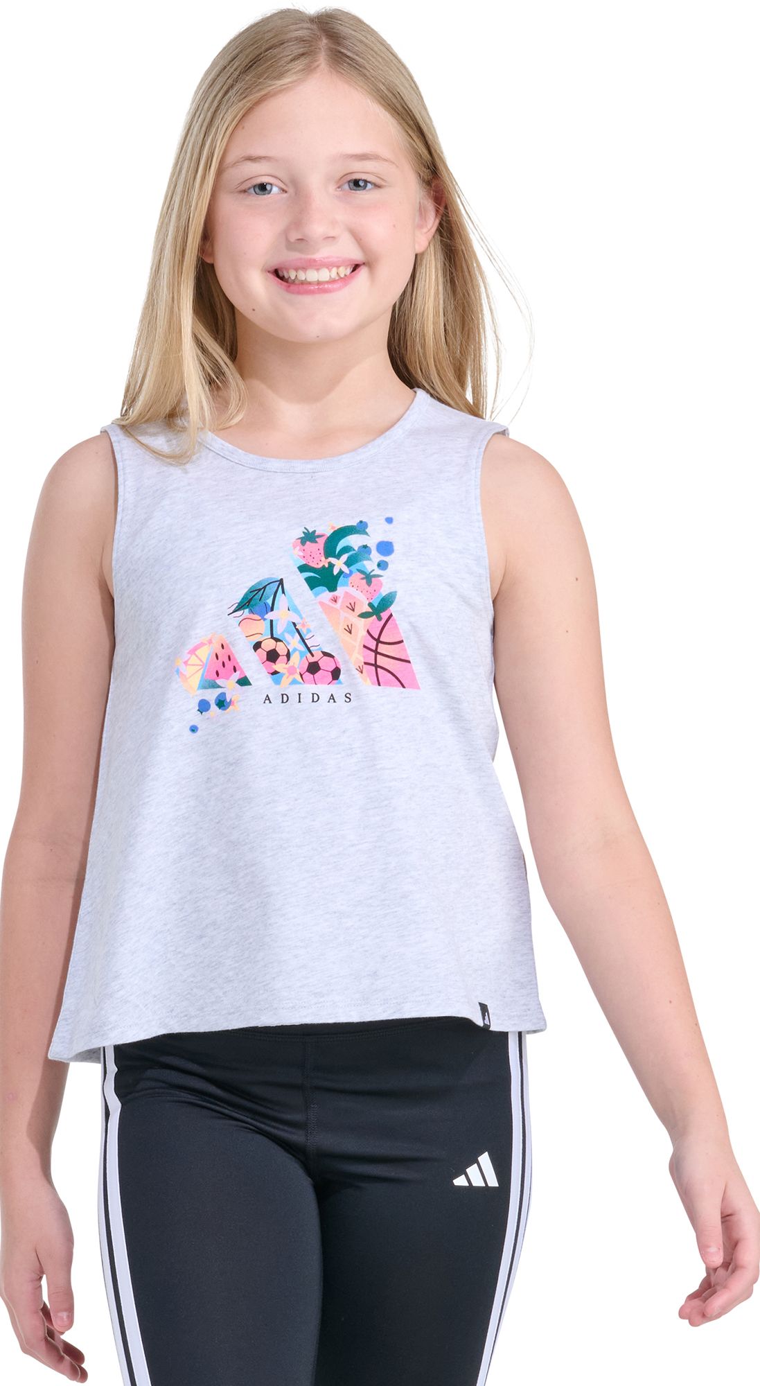 Playtime is never out of reach with this adidas sleeveless tank, built for endless energy and easy movement. Designed with a short length that is easy to layer, this tank features soft jersey fabric that feels gentle, while the back vent and A-line hem keep things breezy. Equip them to step into the world with confidence in clothing that is ready for action.