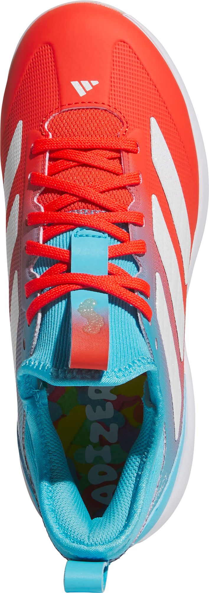 Inspired by the sweetest candies around, these kids' baseball cleats feature a two-tone upper with sugar-inspired coated 3-Stripes and a gummy accent. The Lightstrike midsole provides lightweight cushioning designed for quick movements, so your young player can make an impact on the field. The TPU outsole digs into the dirt for extra traction during those all-important sprints around the diamond.