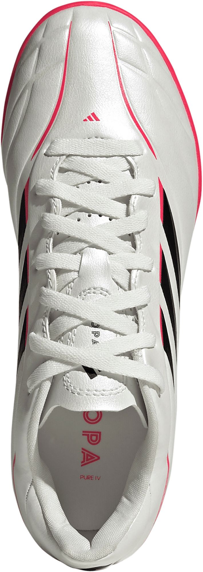 Unlock your potential with the COPA Pure IV Club turf football shoes. Designed for those who appreciate a classic touch, these boots offer a modern twist with comfort, close ball feel, and fit at the forefront. The synthetic upper adapts to the shape of your foot, providing durability and flexibility, and the tongue perforations help your feet stay cool during intense matches. Experience enhanced ball control with 3D haptic prints that grip the ball, giving you precision and control. The rubber outsole is specifically crafted for turf pitches, providing the traction you need to make quick turns and precise moves. Whether you're perfecting your skills or playing a competitive match, these turf football shoes are your reliable partner on the pitch. Embrace the heritage and innovation of adidas with these boots that offer both performance and style.