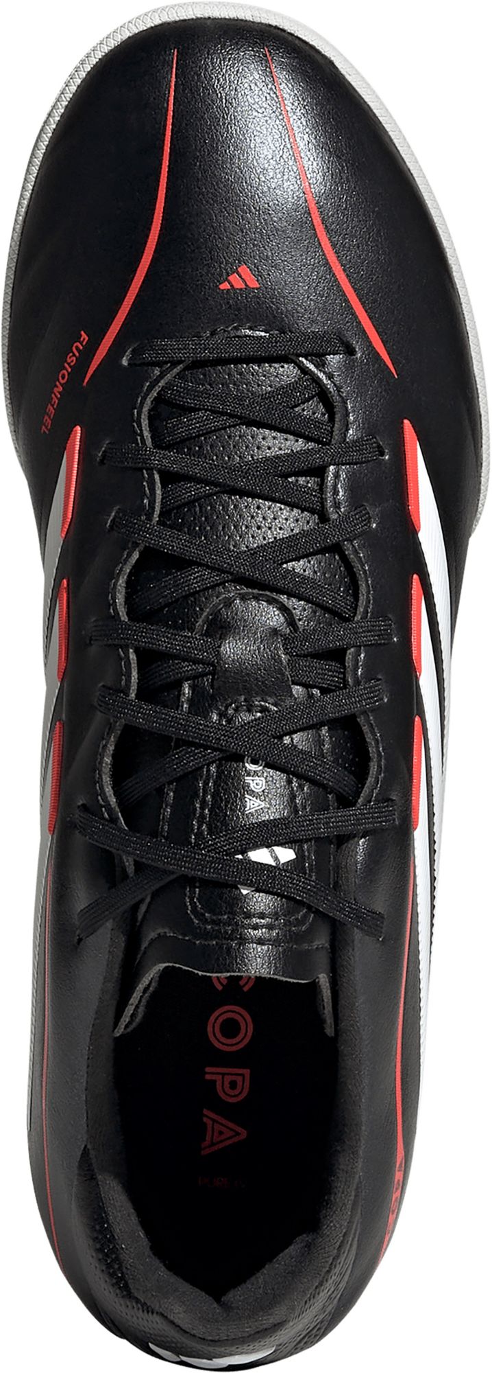 The Copa Pure IV League Turf Football Shoes are designed for comfort and performance on turf pitches. Featuring FUSIONFEEL technology for a leather-like softness, these shoes have a rubber outsole for optimal traction. The padded tongue ensures comfort, while the regular fit adapts to your foot's shape.
