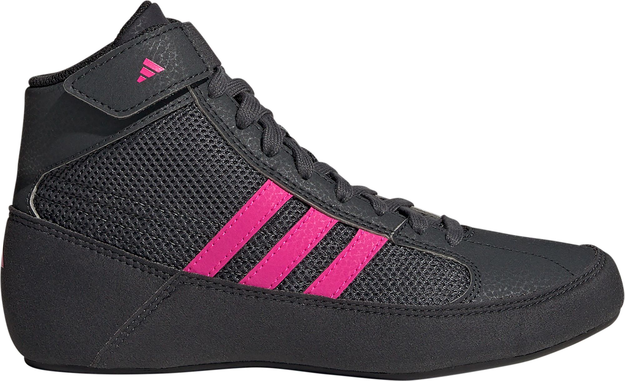 Start your child on their way to Championship caliber wrestling in the HVC. A single-layer mesh upper with suede and synthetic leather overlays delivers exceptional lightweight durability and breathability. The adidas® HVC wrestling shoe has an elastic ankle strap that helps keep laces tied and in place while a full-length one piece outsole provides maximum mat contact and traction to keep your grappler performing their best.
