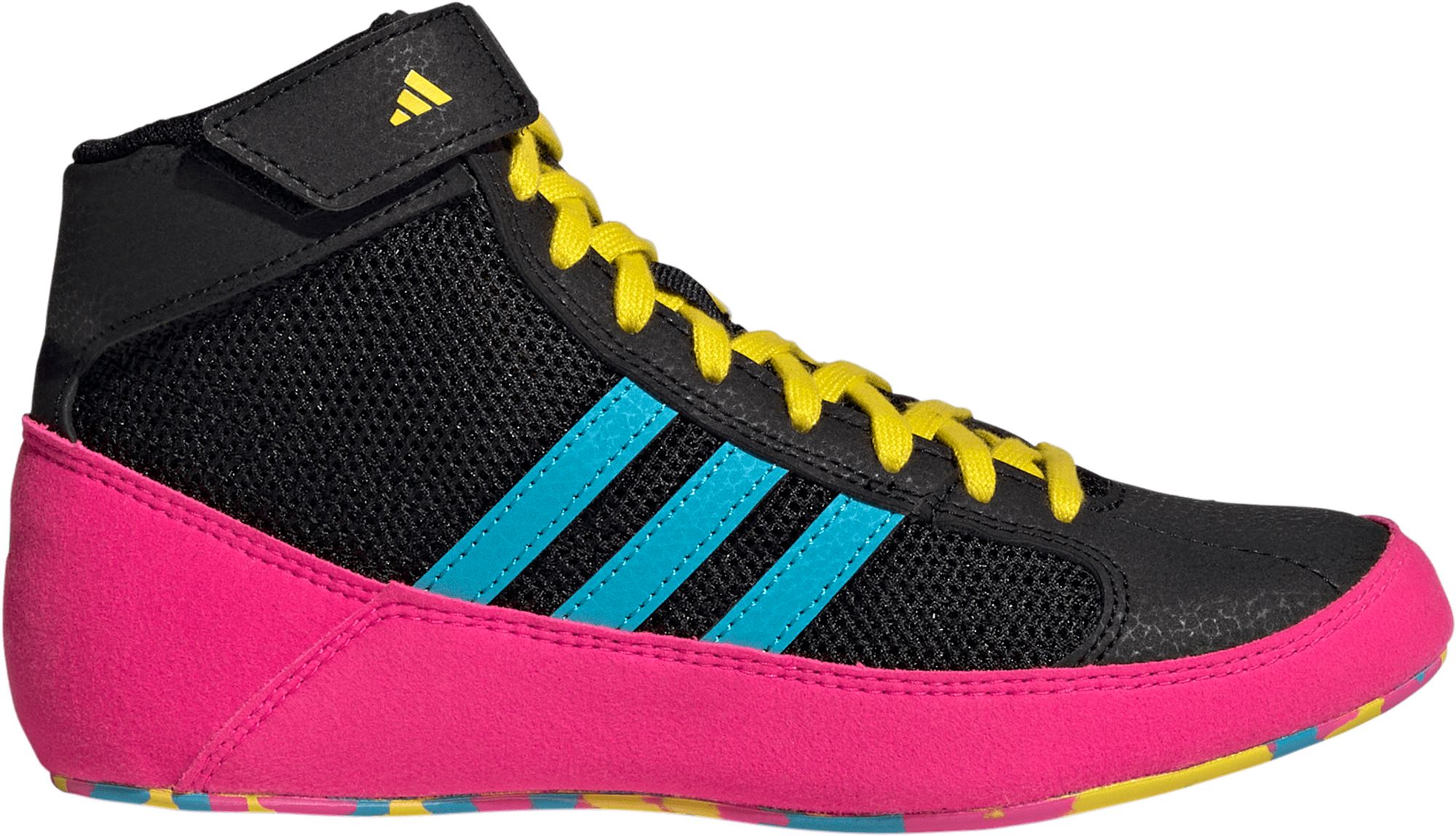 Start your child on their way to Championship caliber wrestling in the HVC. A single-layer mesh upper with suede and synthetic leather overlays delivers exceptional lightweight durability and breathability. The adidas® HVC wrestling shoe has an elastic ankle strap that helps keep laces tied and in place while a full-length one piece outsole provides maximum mat contact and traction to keep your grappler performing their best.