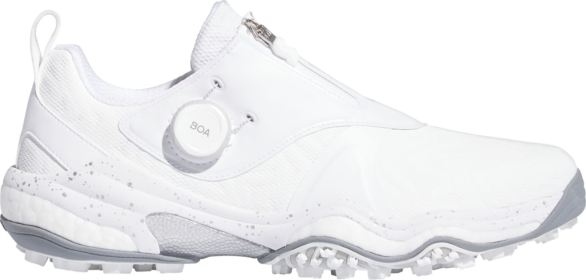 Supercharge your game. Supercharge your style. Shake up tradition in these Codechaos golf shoes from adidas. From the cushioned feel of Lightstrike + BOOST underfoot to the Twist Grip spikeless outsole that holds tight through your swing, these shoes offer tour-level performance while redefining golf style. They're finished off with a zipper shroud and the micro-adjustable BOA® Fit System that lets you fine-tune the fit with the twist of a dial