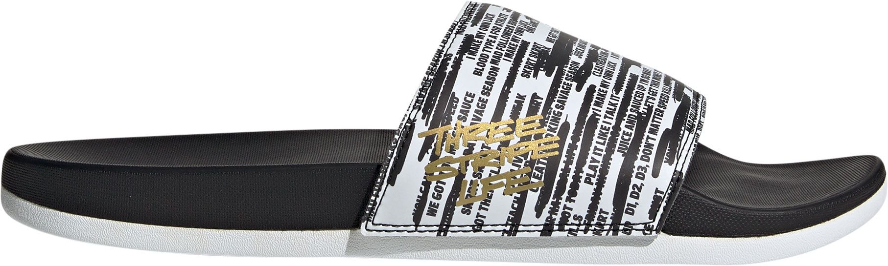 Comfort and a fashionable look are what to expect when you slide your feet in to the adidas® Adilette Three Stripe Life comfort slide.
