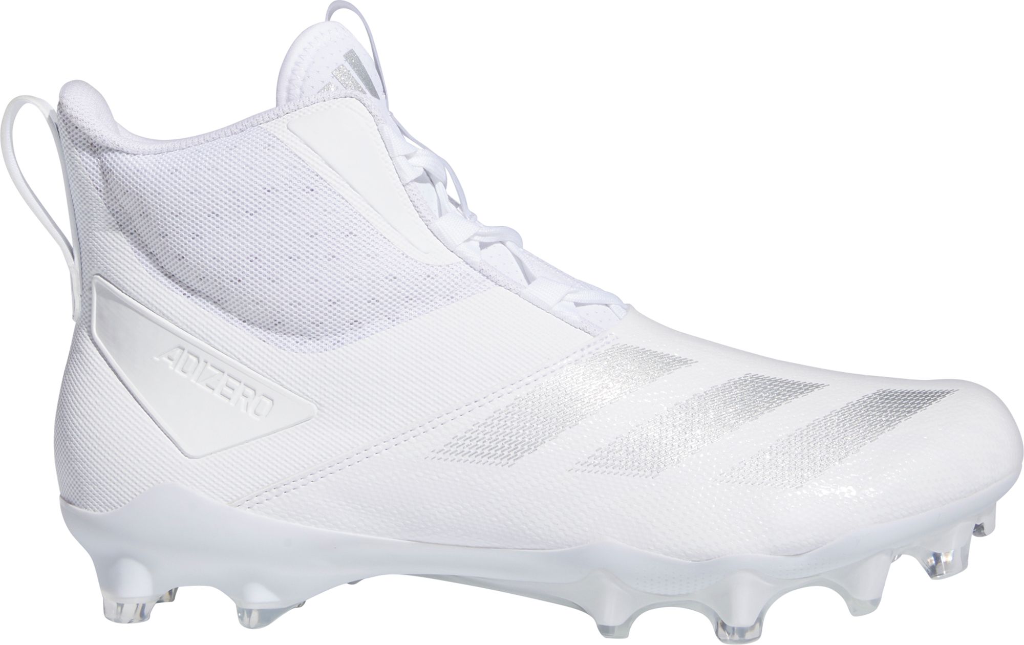 Dominate the line of scrimmage in these adidas Adizero Chaos American Football Lineman Cleats from adidas. An essential piece of gear for any lineman, the synthetic cleated outsole grabs the turf to drive opponents back on impact. A synthetic upper reinforced with textile lining contains your foot through intense plays. Designed for power and force, these cleats will have you dominating the trenches.