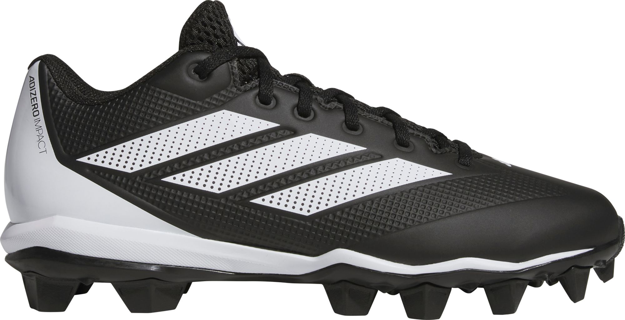 Baseball is a game of big moments. Be ready for all of them in these adidas baseball cleats. The outsole digs into dirt and grass, so you can launch off the bag for a steal. The synthetic upper is durable to stand up to a season of plays.